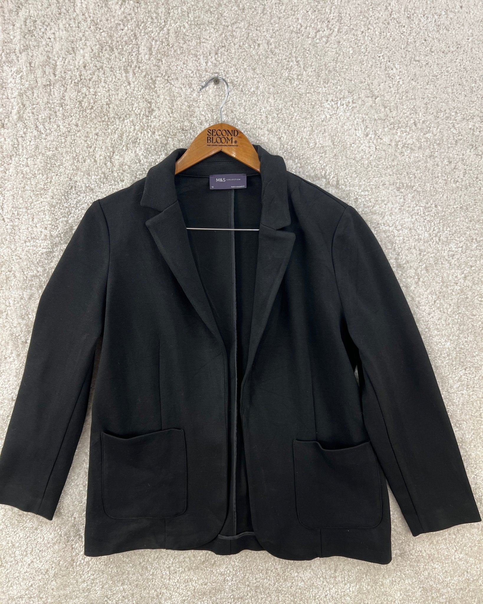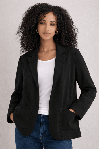 Sleek Open Front Blazer with Patch Pockets- Size: M/L