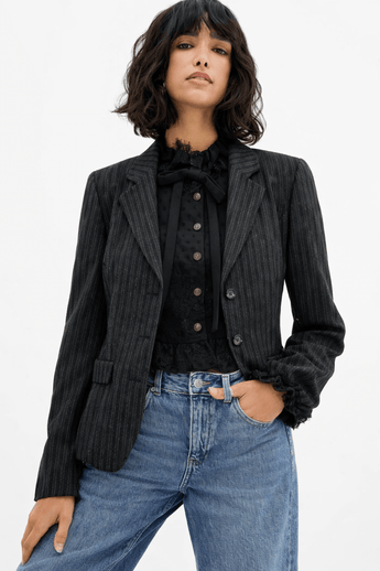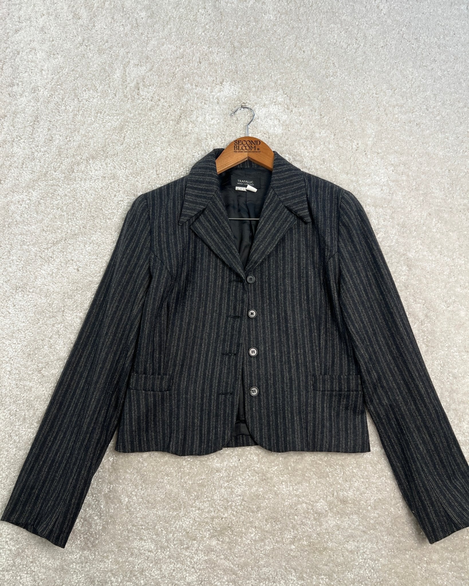 Wool Blend Cropped Blazer with a Pinstripe Effect-Size: M