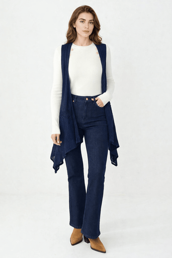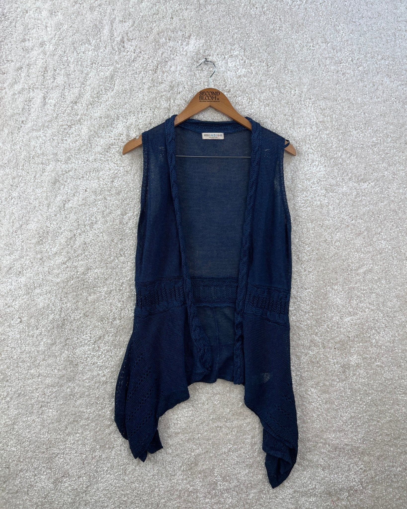Linen Viscose Crochet Cardigan with Draped Hem- Size: M