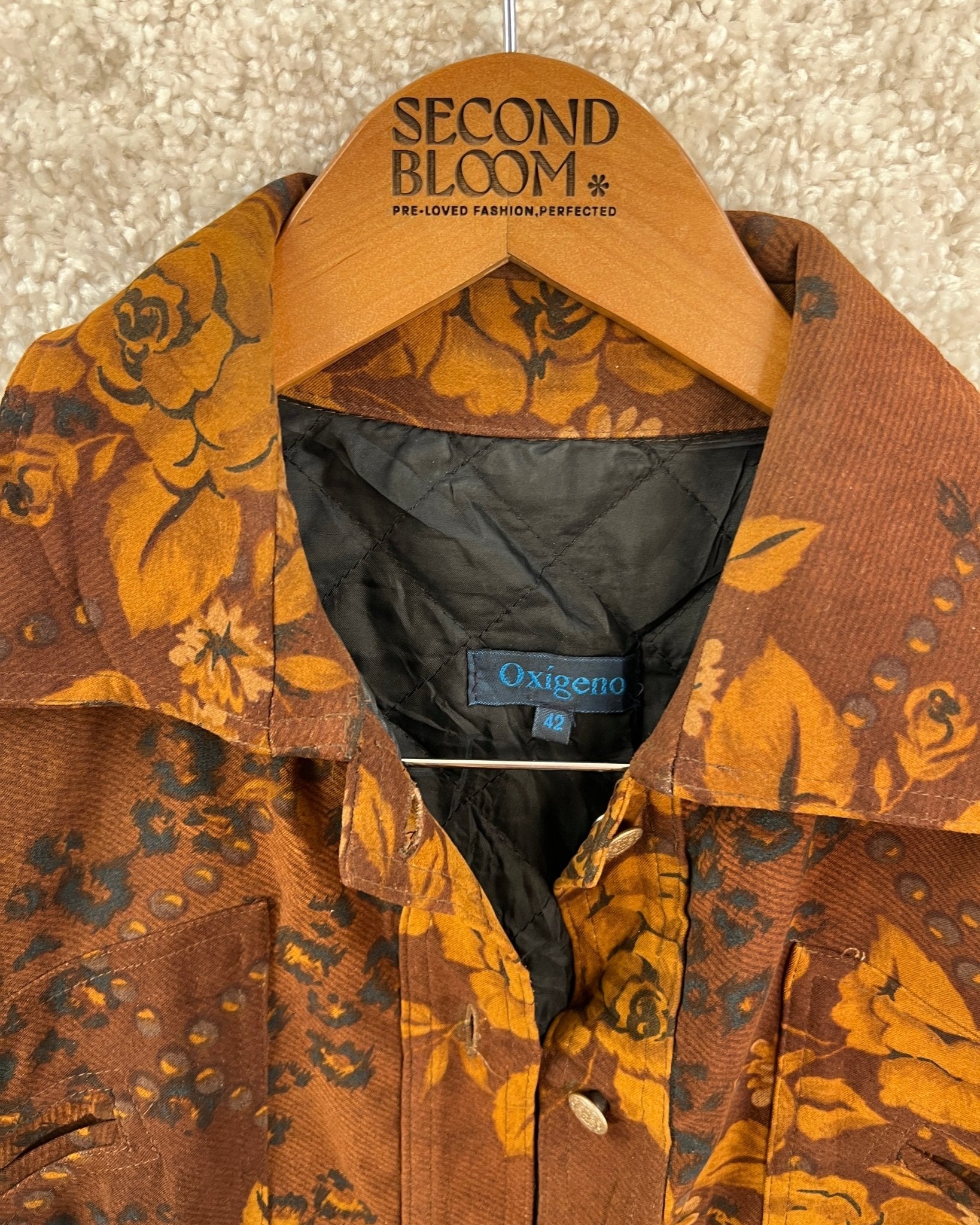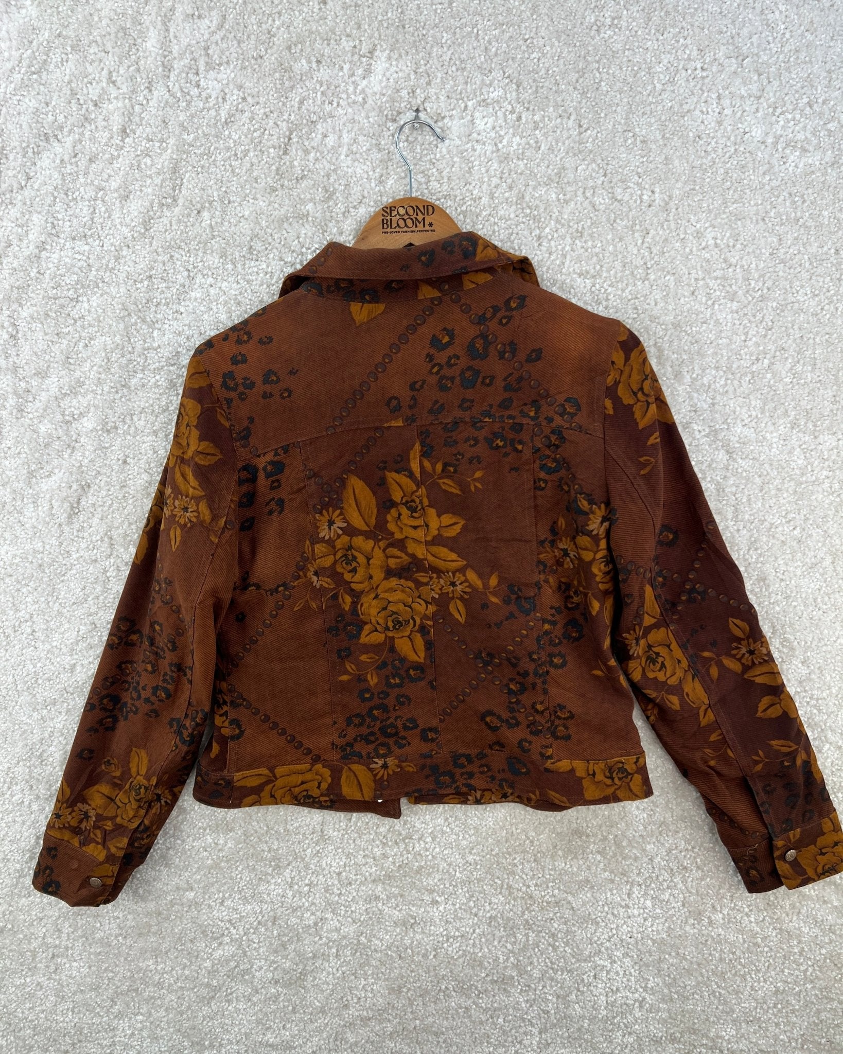 Floral Denim-Style Jacket in Brown and Muted Gold- Size: M/L