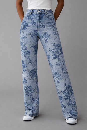 Lightweight Jeans in Bold Floral Pattern- Size: S/M