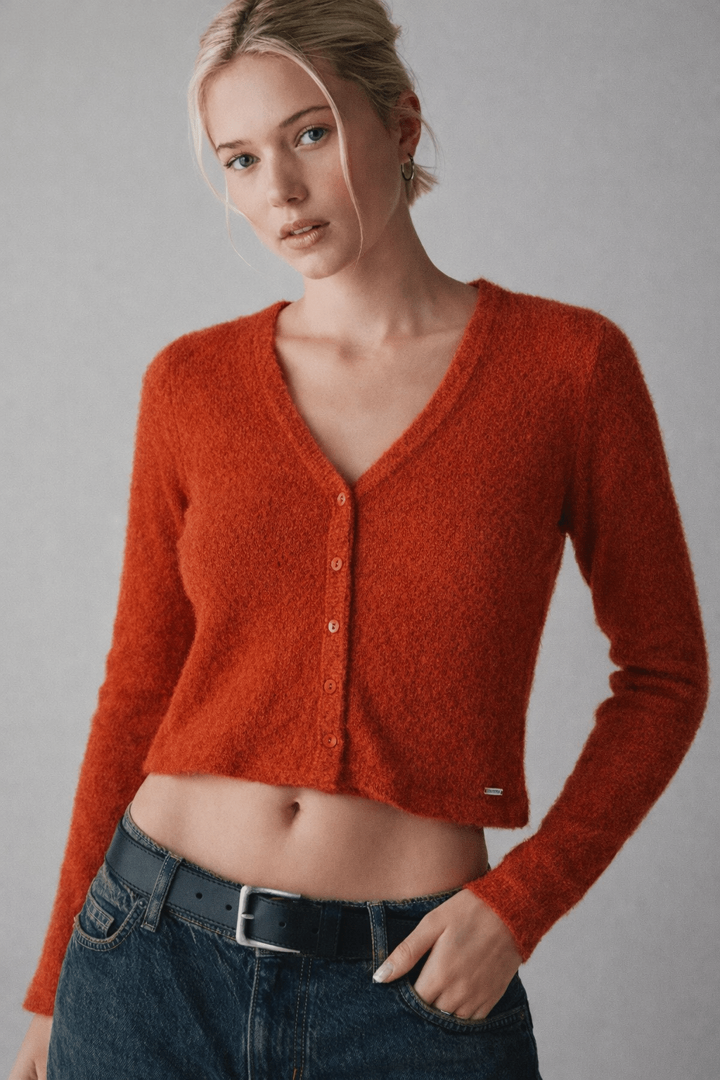 Hollister Cropped Cardigan in Rust Orange- Size: M