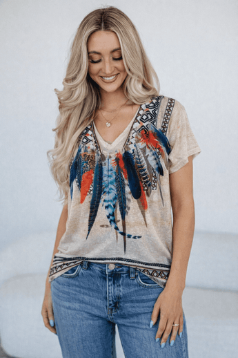 Watercolor Feathers Top in Light Fabric- Size: S