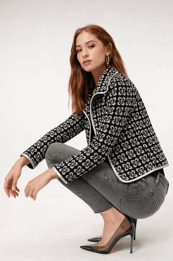 EDINA RONAY Classic Cropped Jacket with Floral Motif - Size: S
