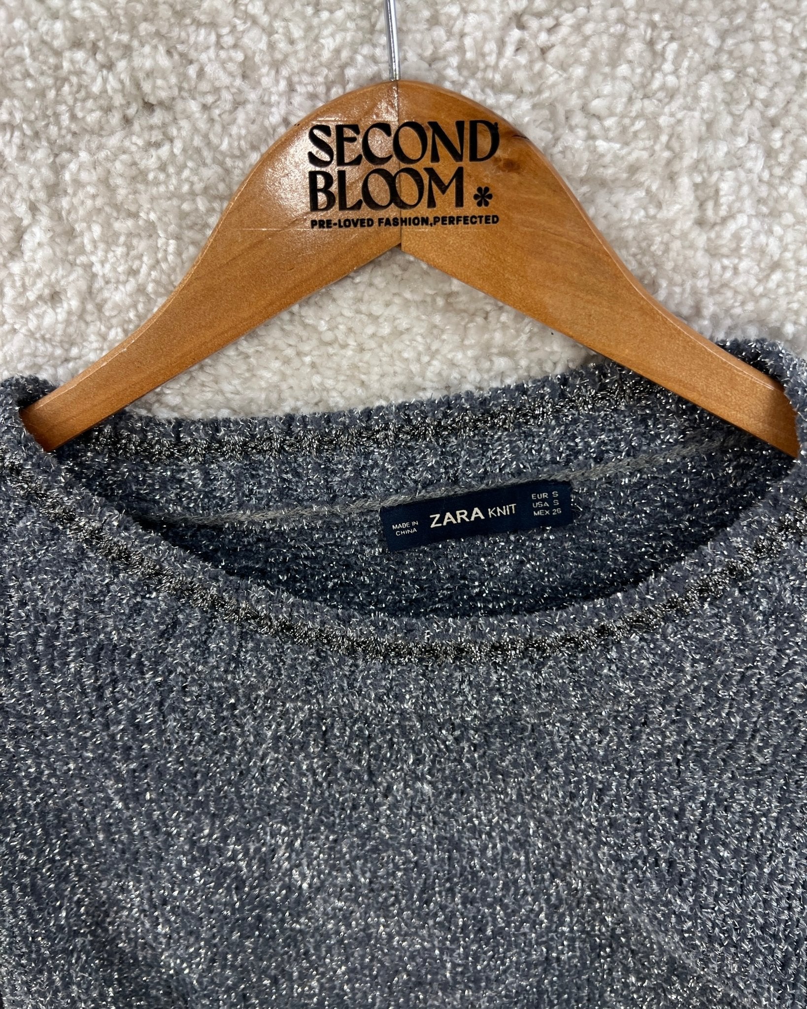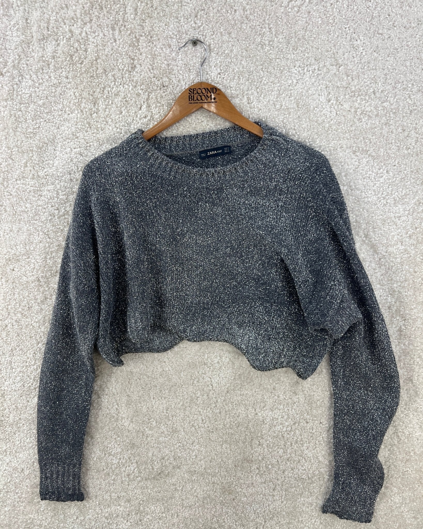 Zara Sparkly Silver Cropped Knit Sweater- Size: S