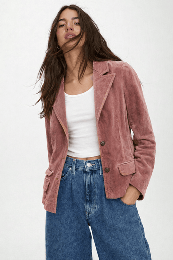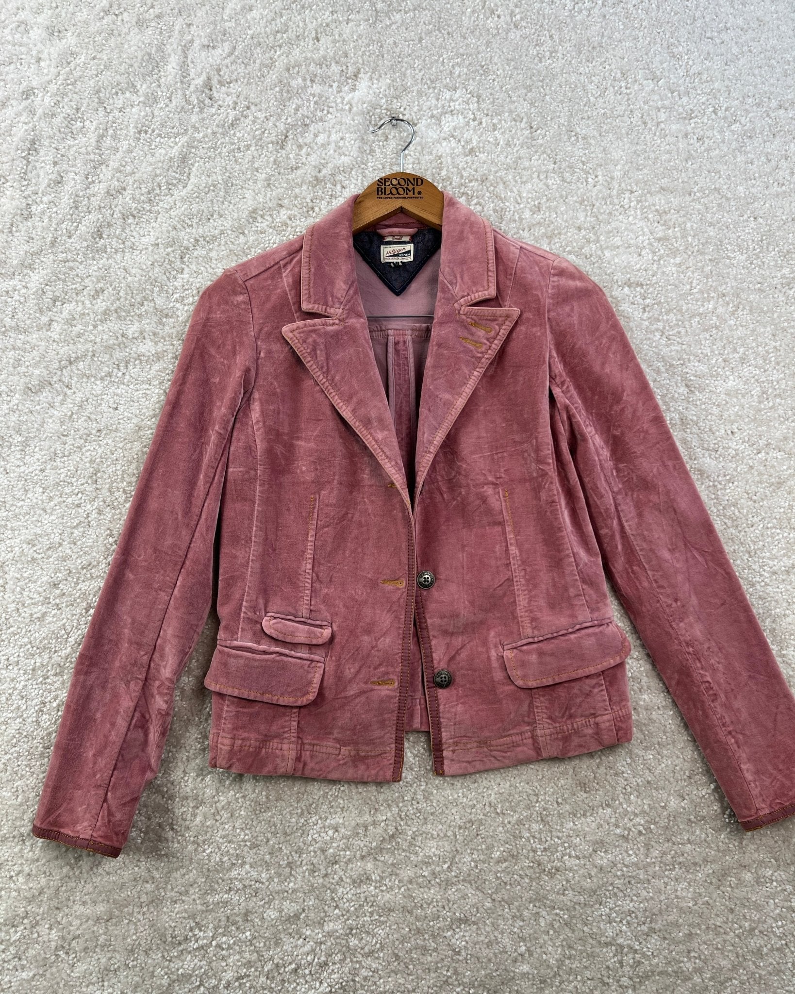 Cotton Tailored Blazer in Pink Velvet- Size: S