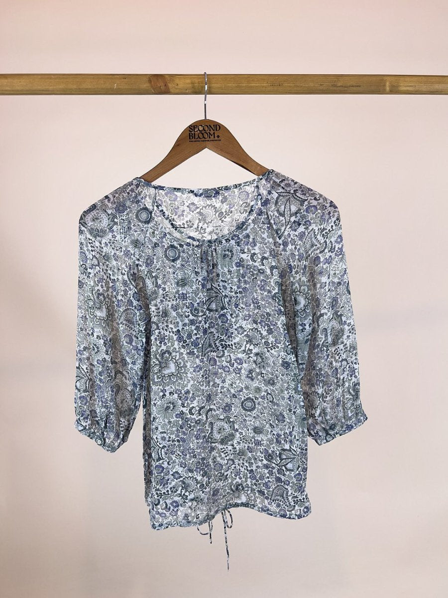 100% Silk Floral Paisley Blouse - Size: S