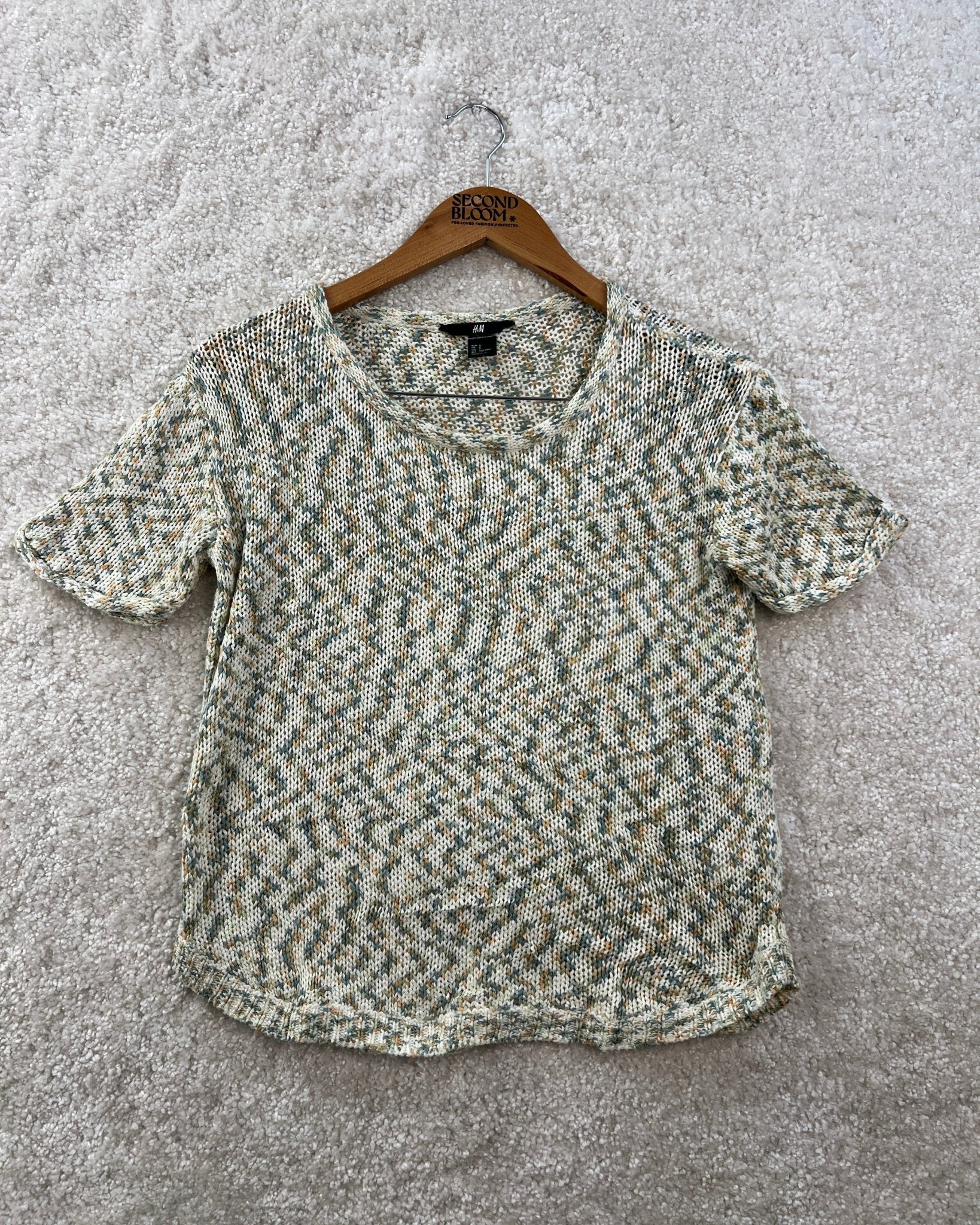 Textured Short Sleeve Top in Muted Green- Size: S