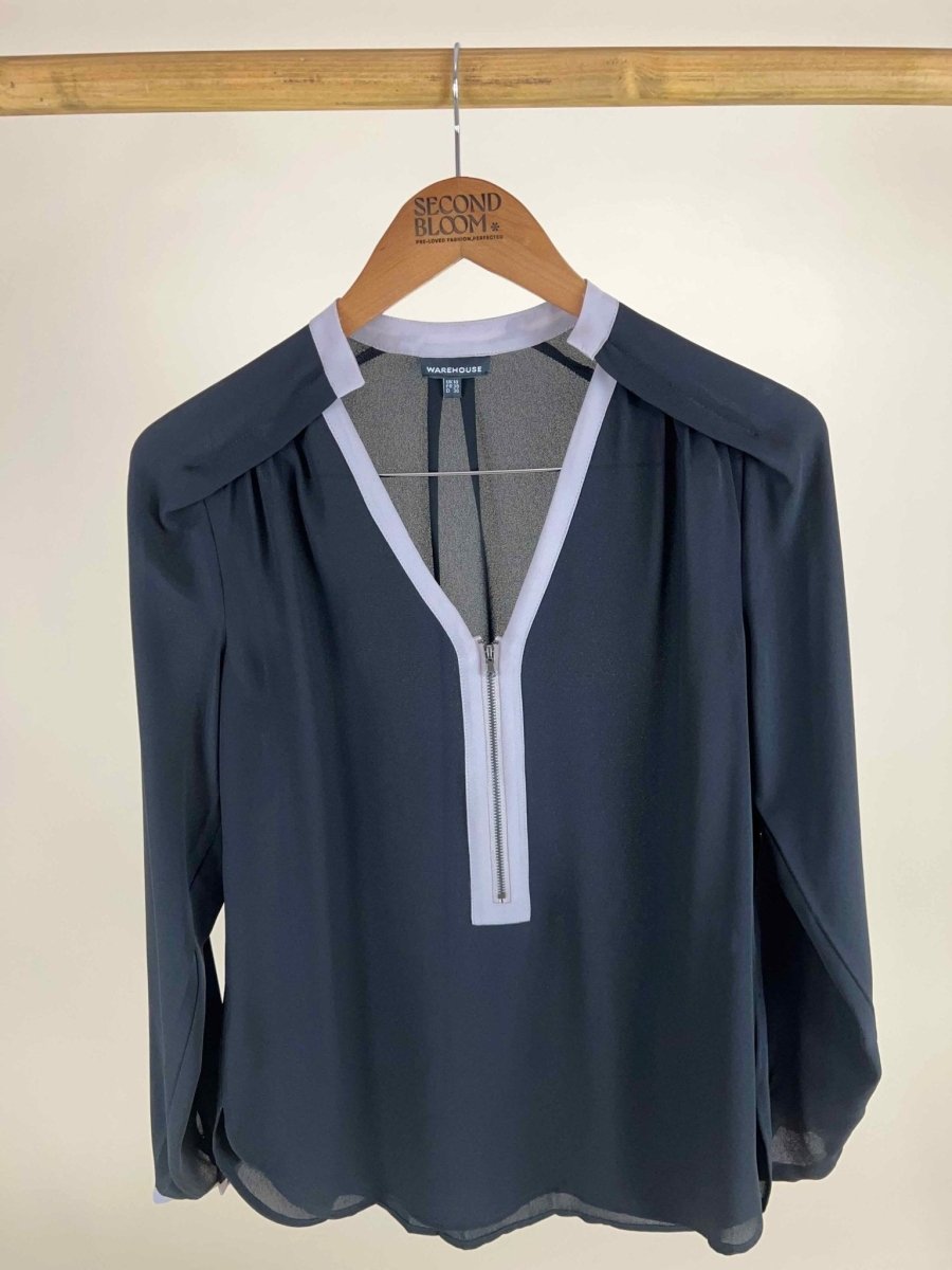 Black blouse with Contrast Trim- Size: S