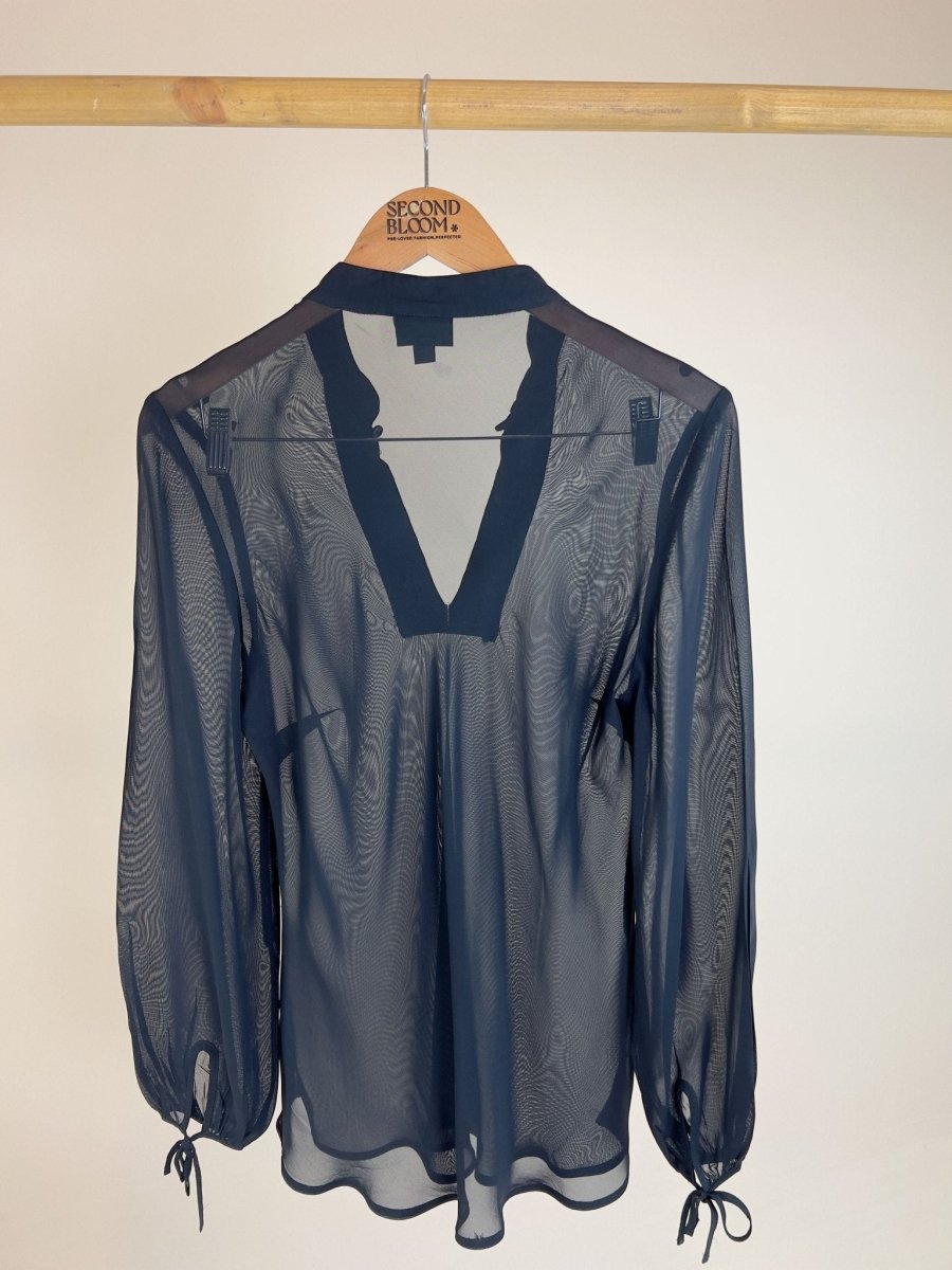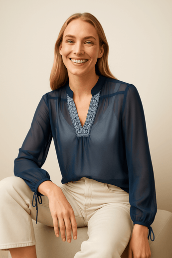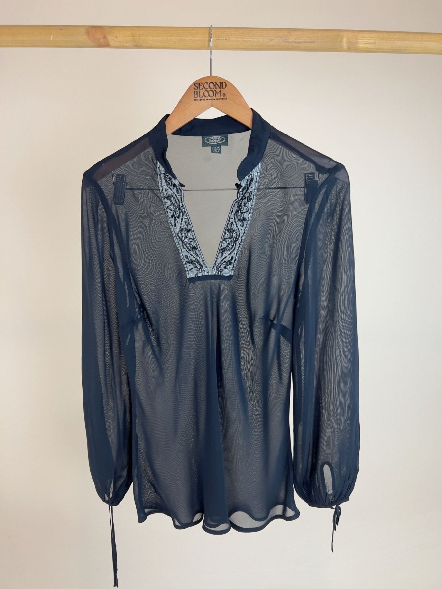 Sheer Blouse with Delicate Embroidery Neckline Size: S/M