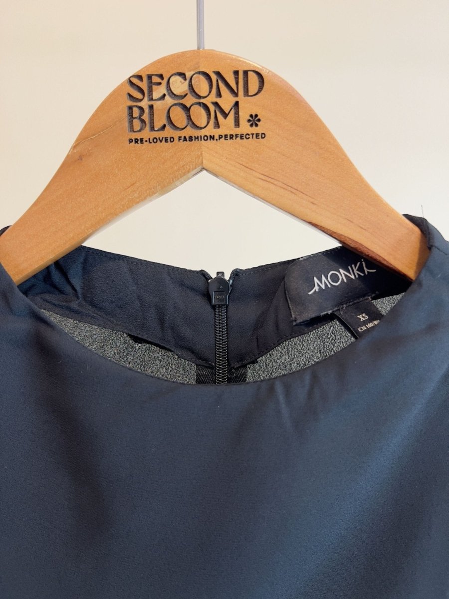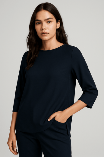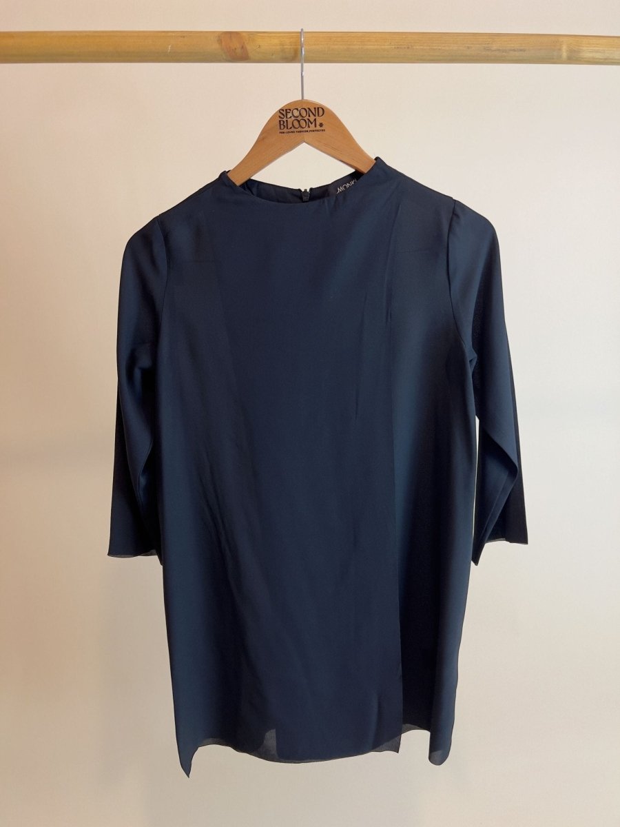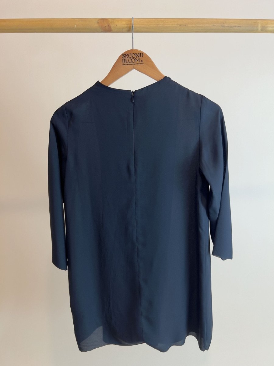 Black Crewneck Blouse with Side Slit - Size: XS