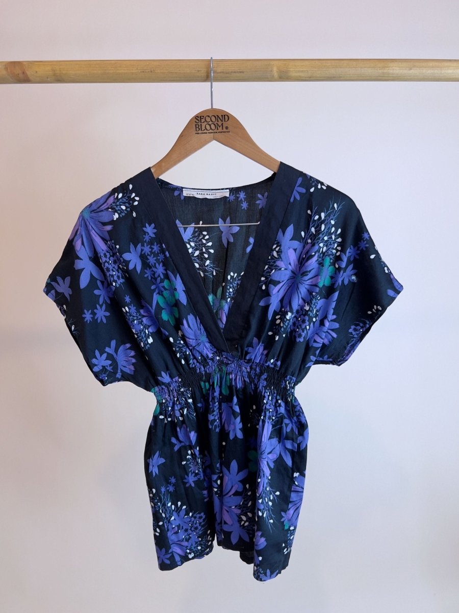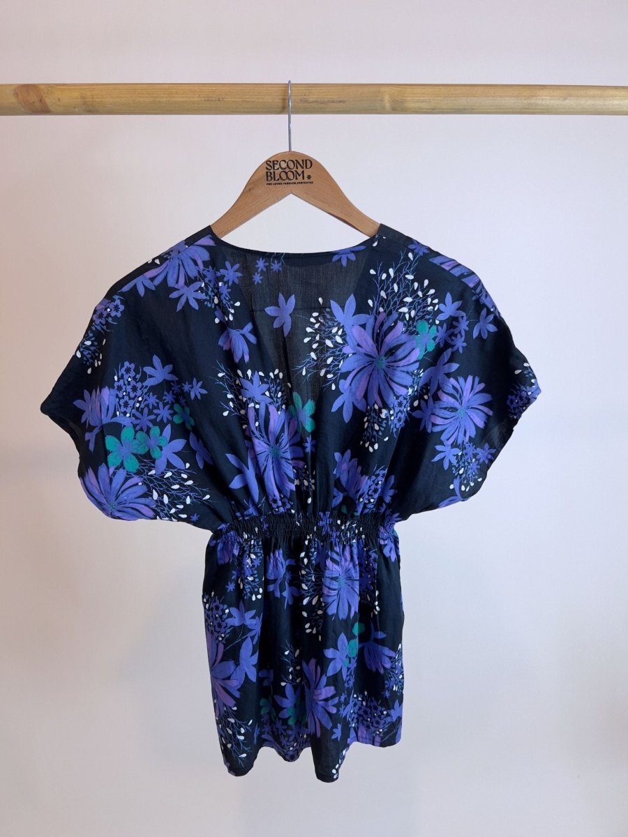 Deep Navy Bold Floral Print Blouse- Size: XL