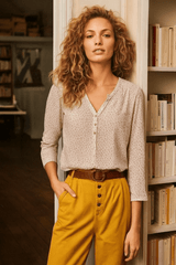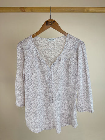 Silk Cotton Blouse with Delicate Floral Print Size: S