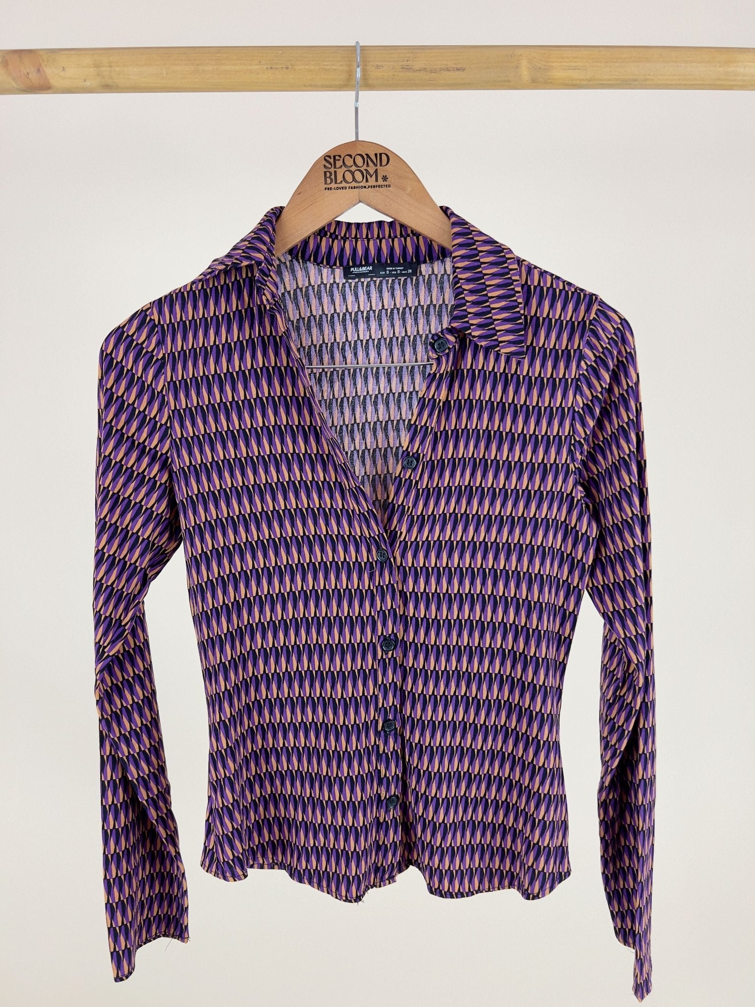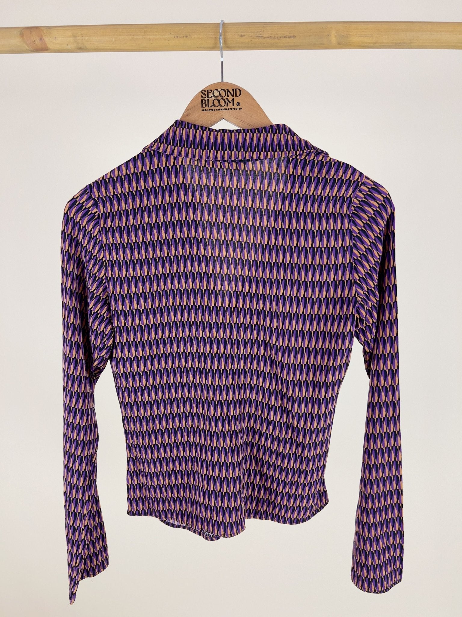 Viscose Purple and Cream Blouse- Size: S