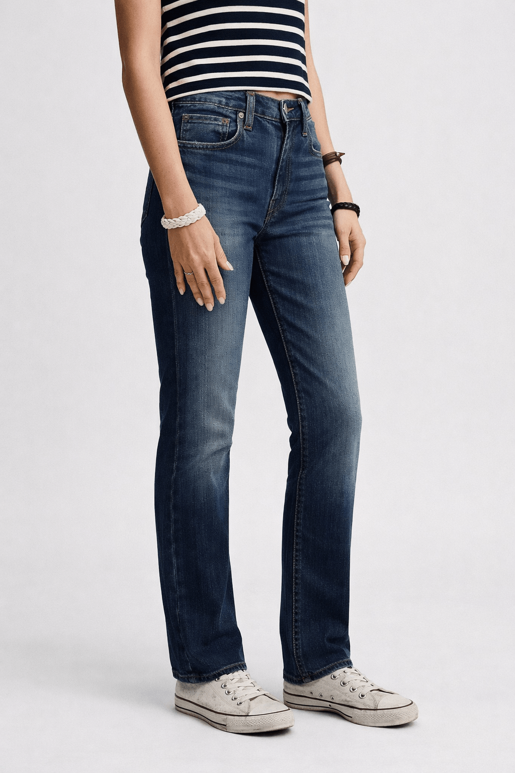 Straight Leg Jeans with Stone Wash Fading- Size: S/M