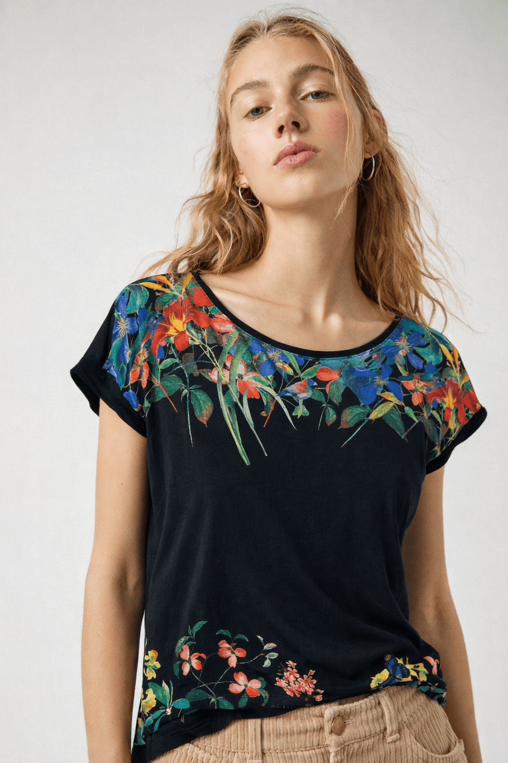 Floral Loose Fit Top in Soft Material- Size: S