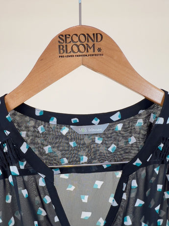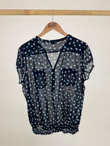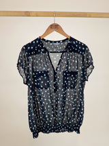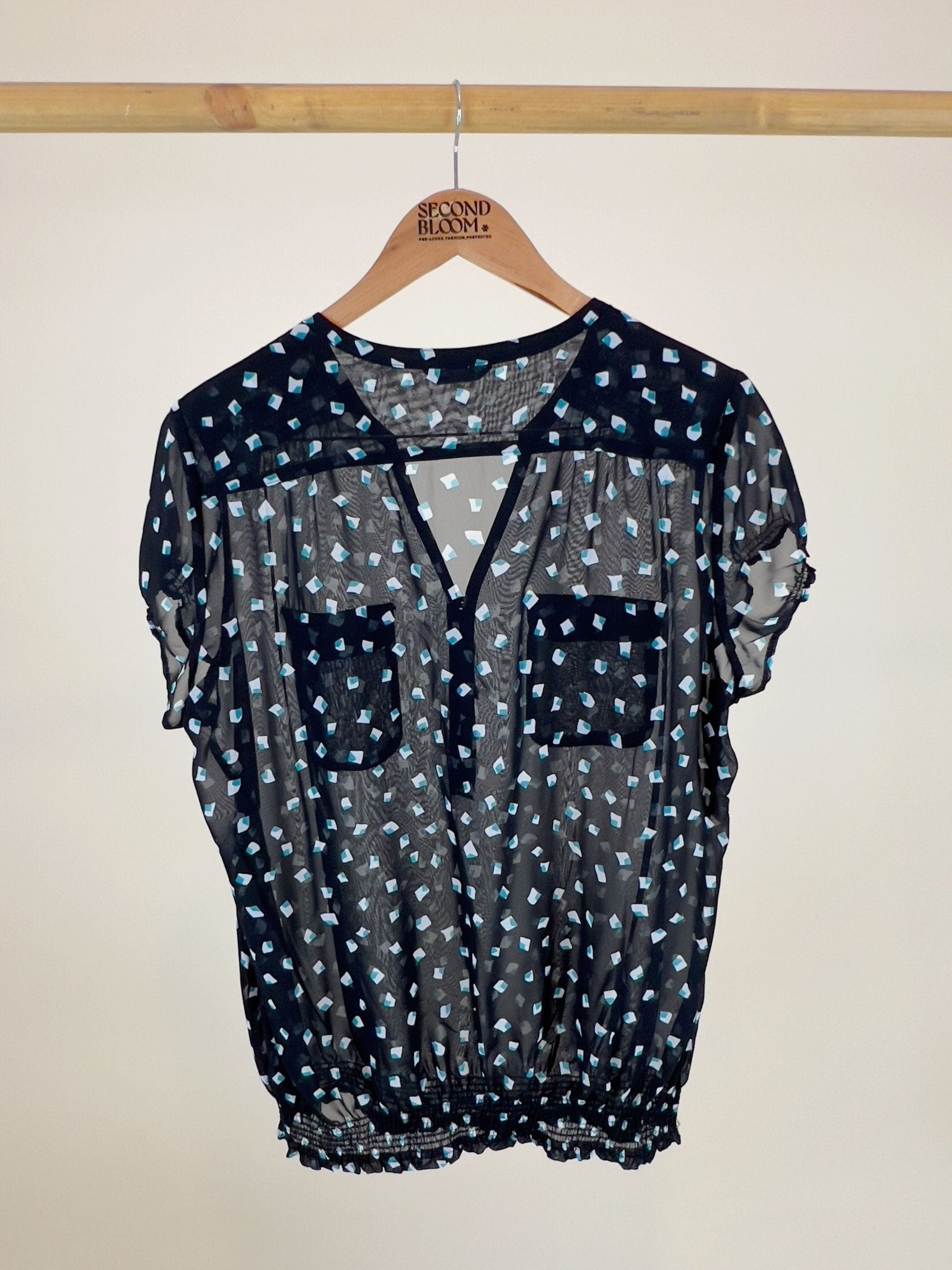 Sheer Blouse with Scattered Square Motifs - Size: L