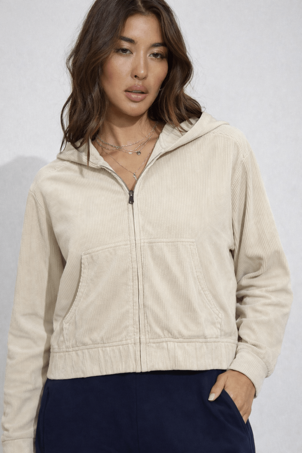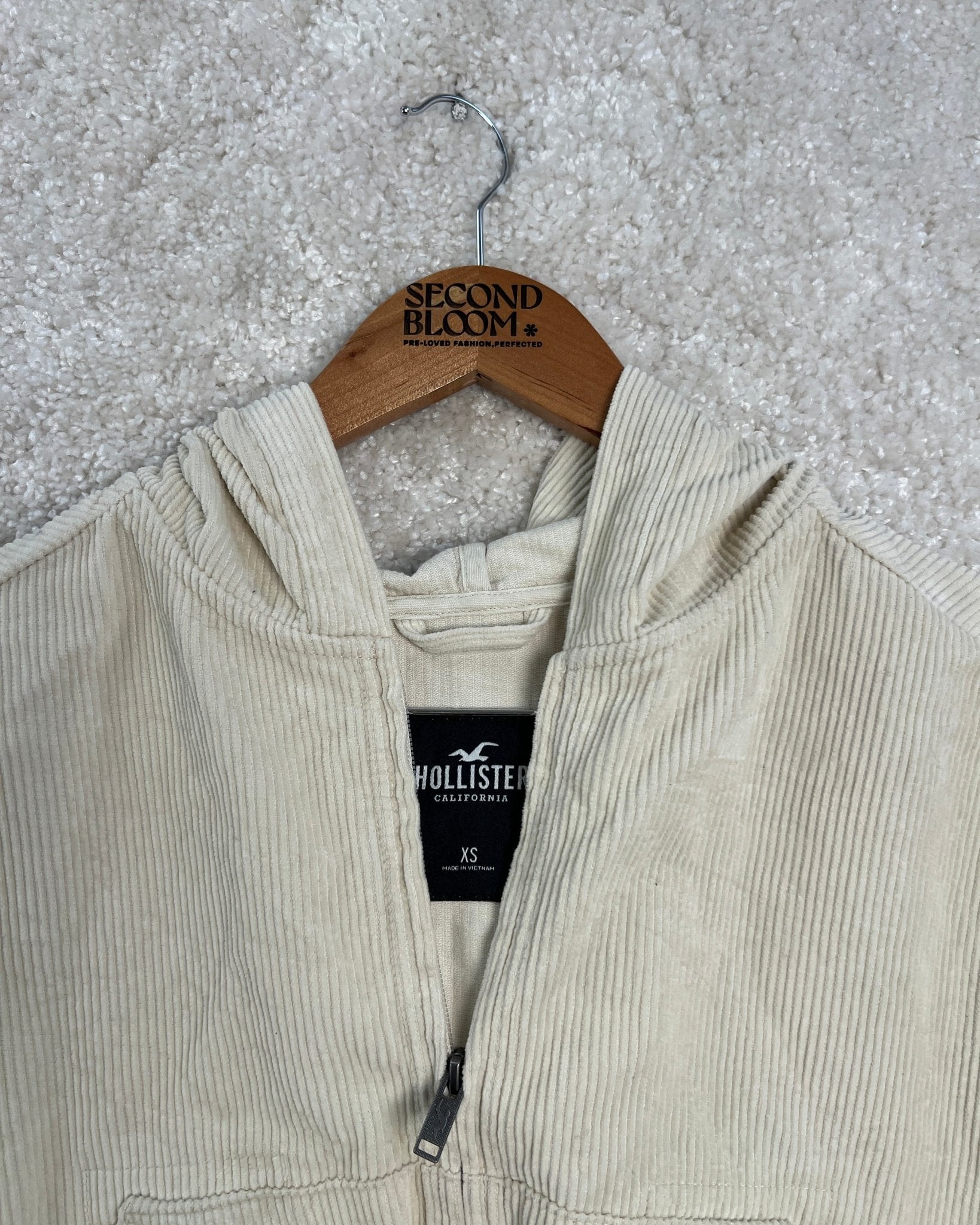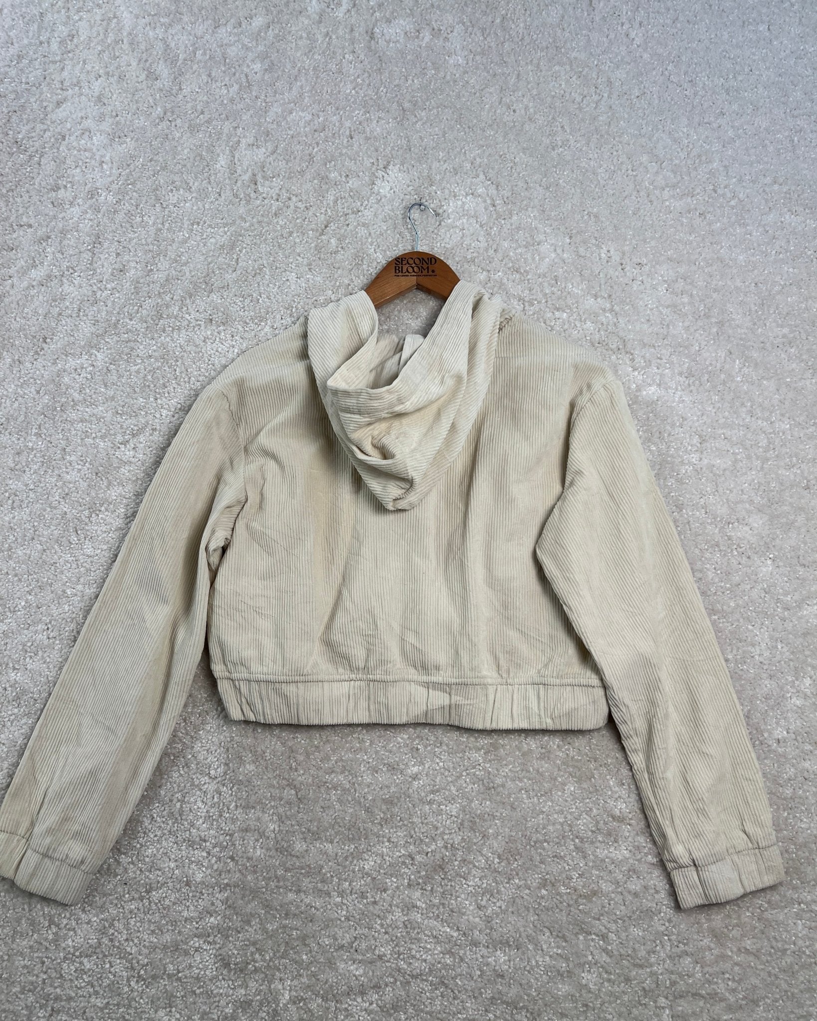 Cream Corduroy Zip-up Crop Jacket - Size: XS