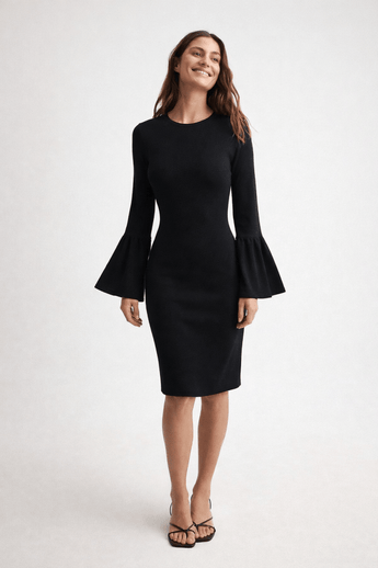 Bodycon-style Mini Dress with Flare Sleeves-Size: M