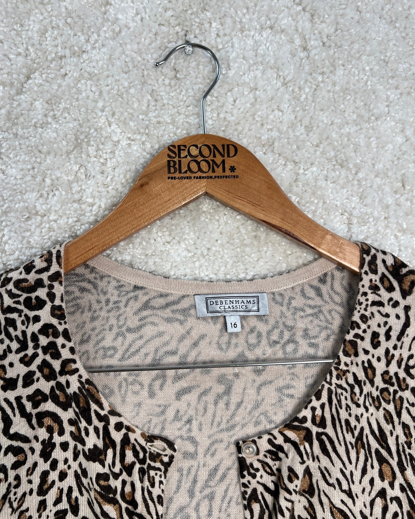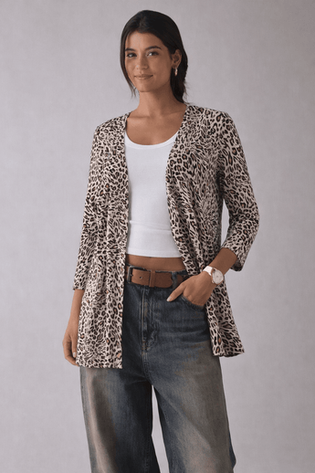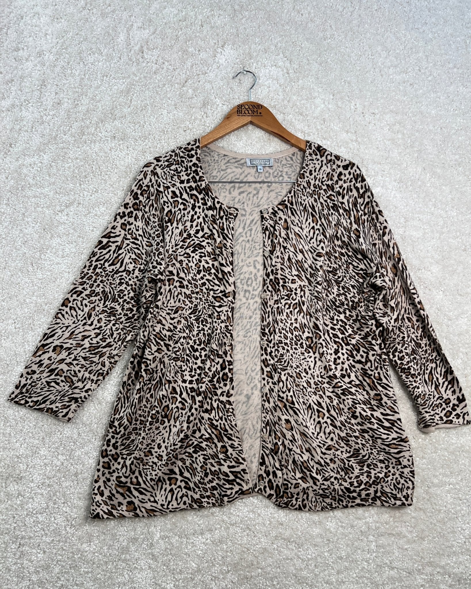 Cream Brown Cardigan in Leopard Print- Size: L