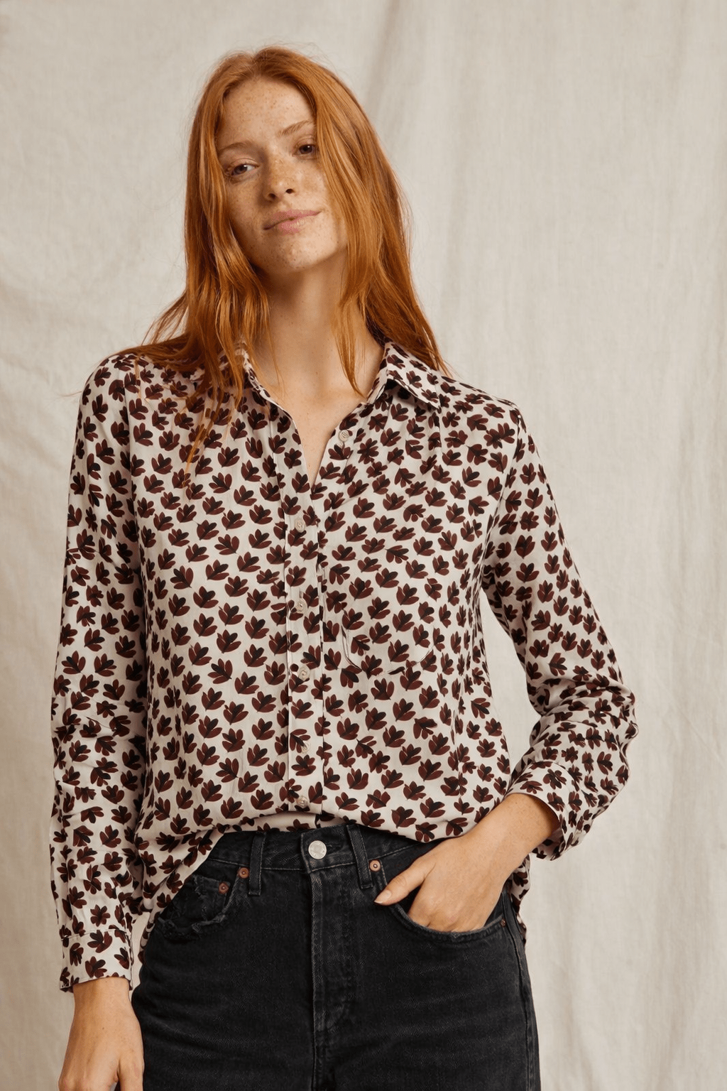 Cotton Shirt with Leaf Motif– Size: XS