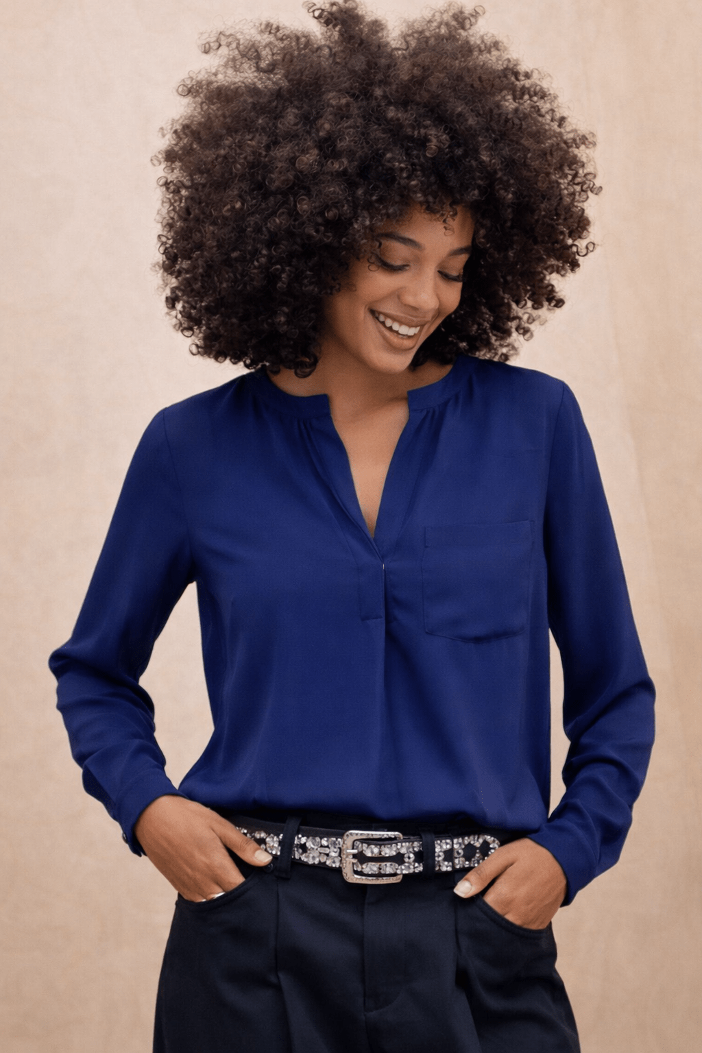 Split Neck Popover Blouse - Size: XS