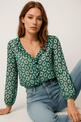 Leopard Print Frill Blouse - Size: M