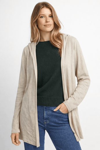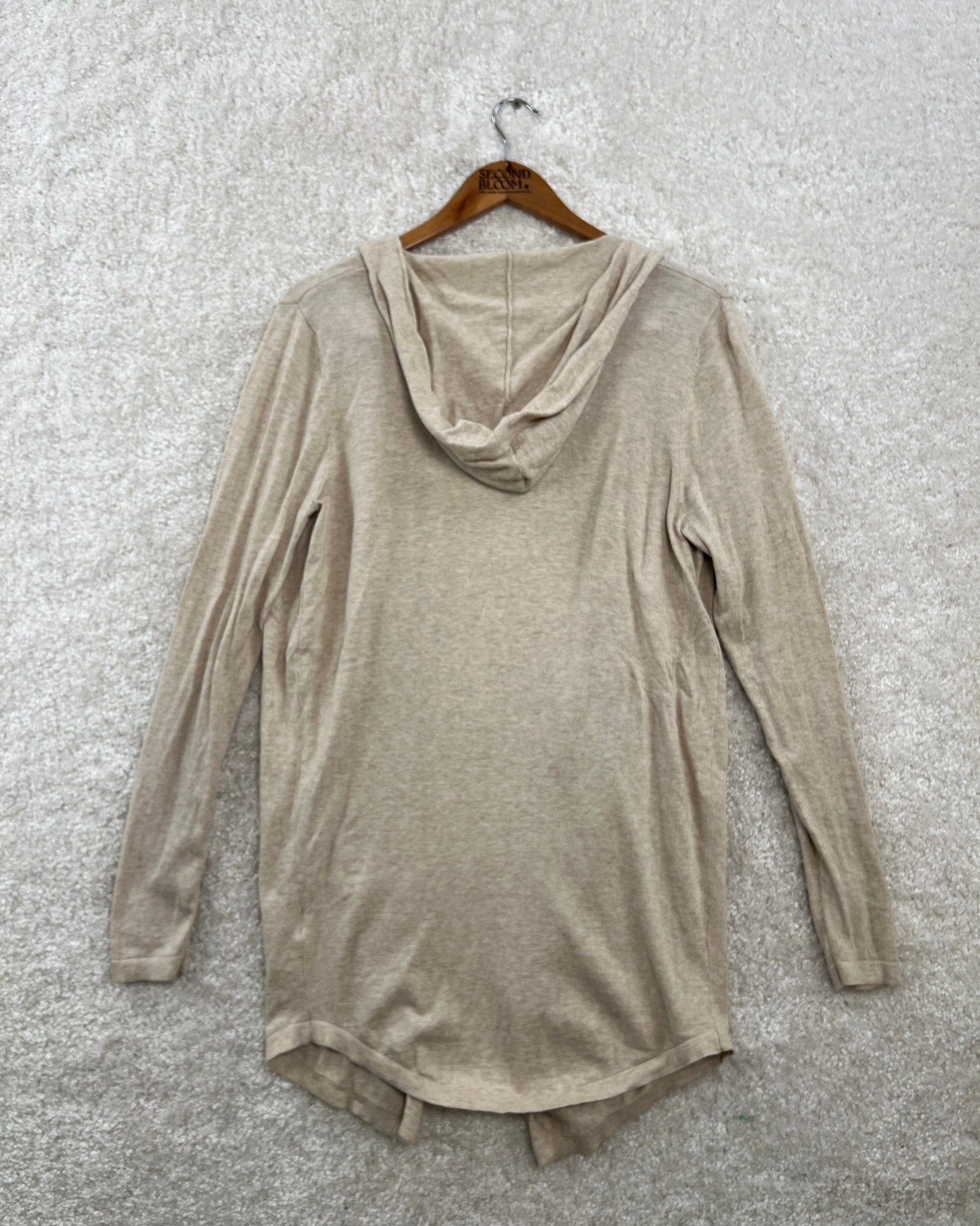 100% Cotton Hooded Cardigan in Soft Beige- Size: S