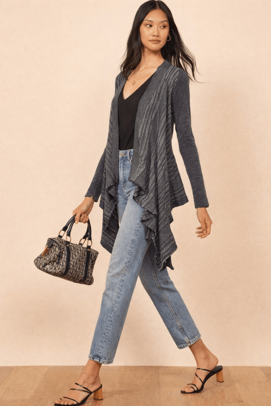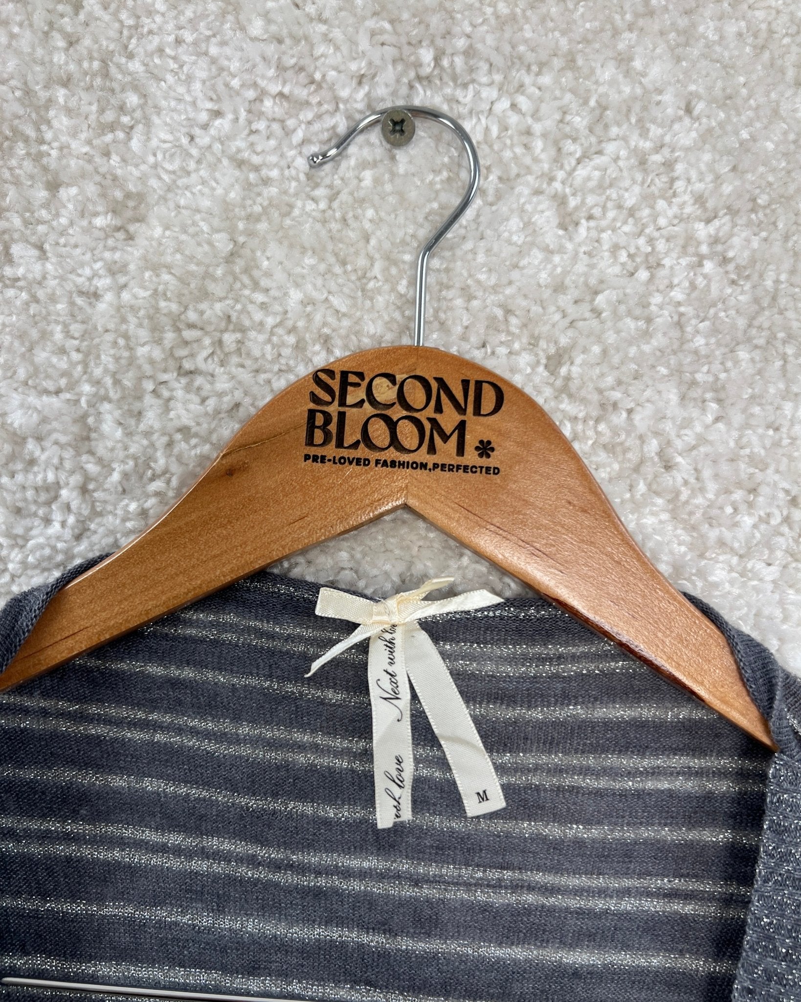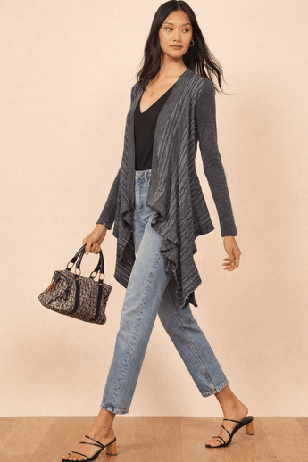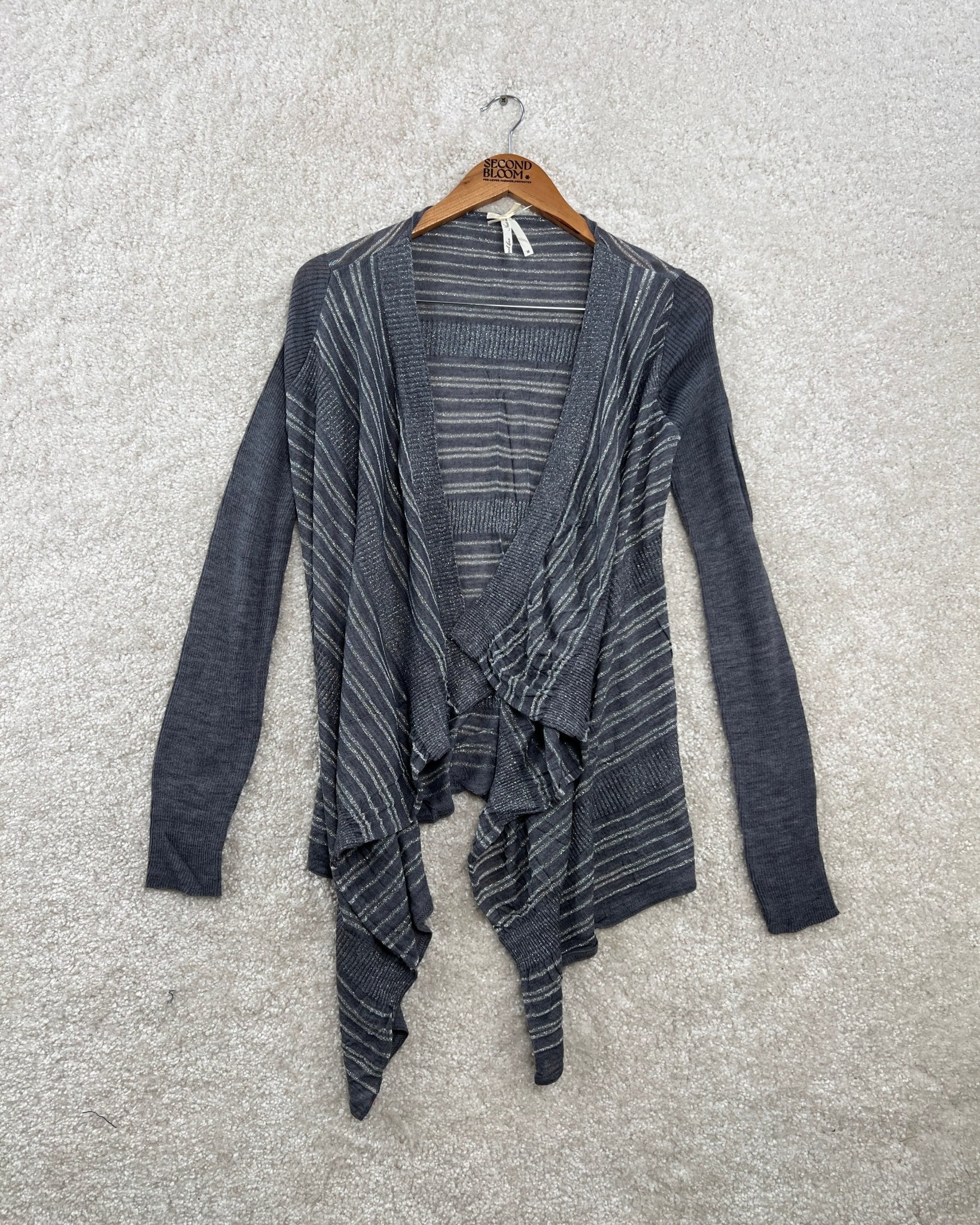 Silver Metallic Thread Cardigan with Fluid Drape - Size: M