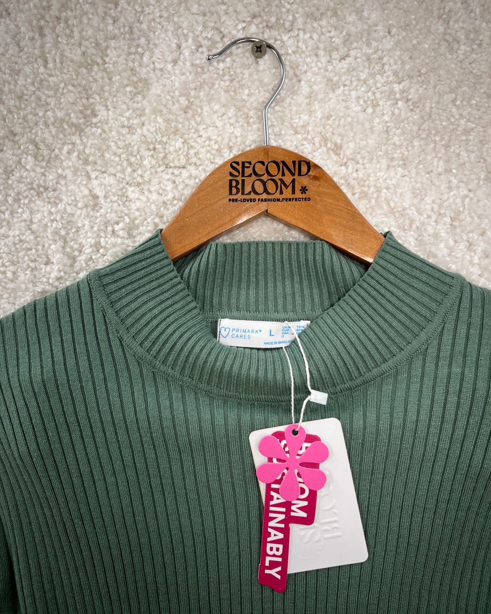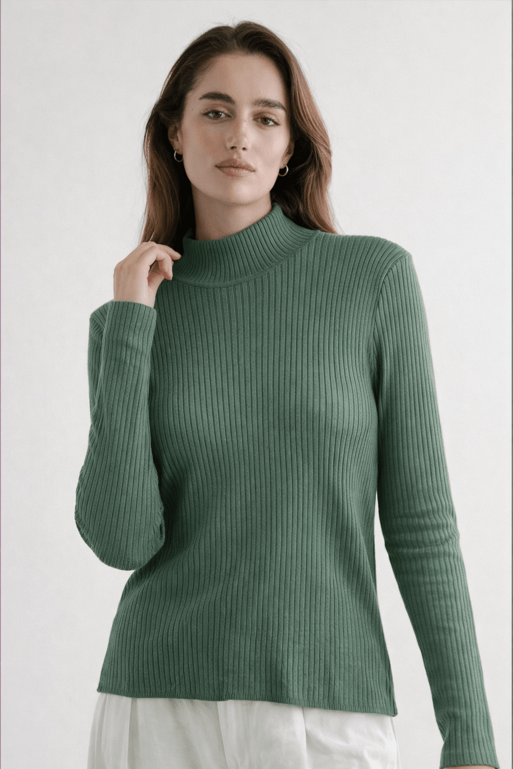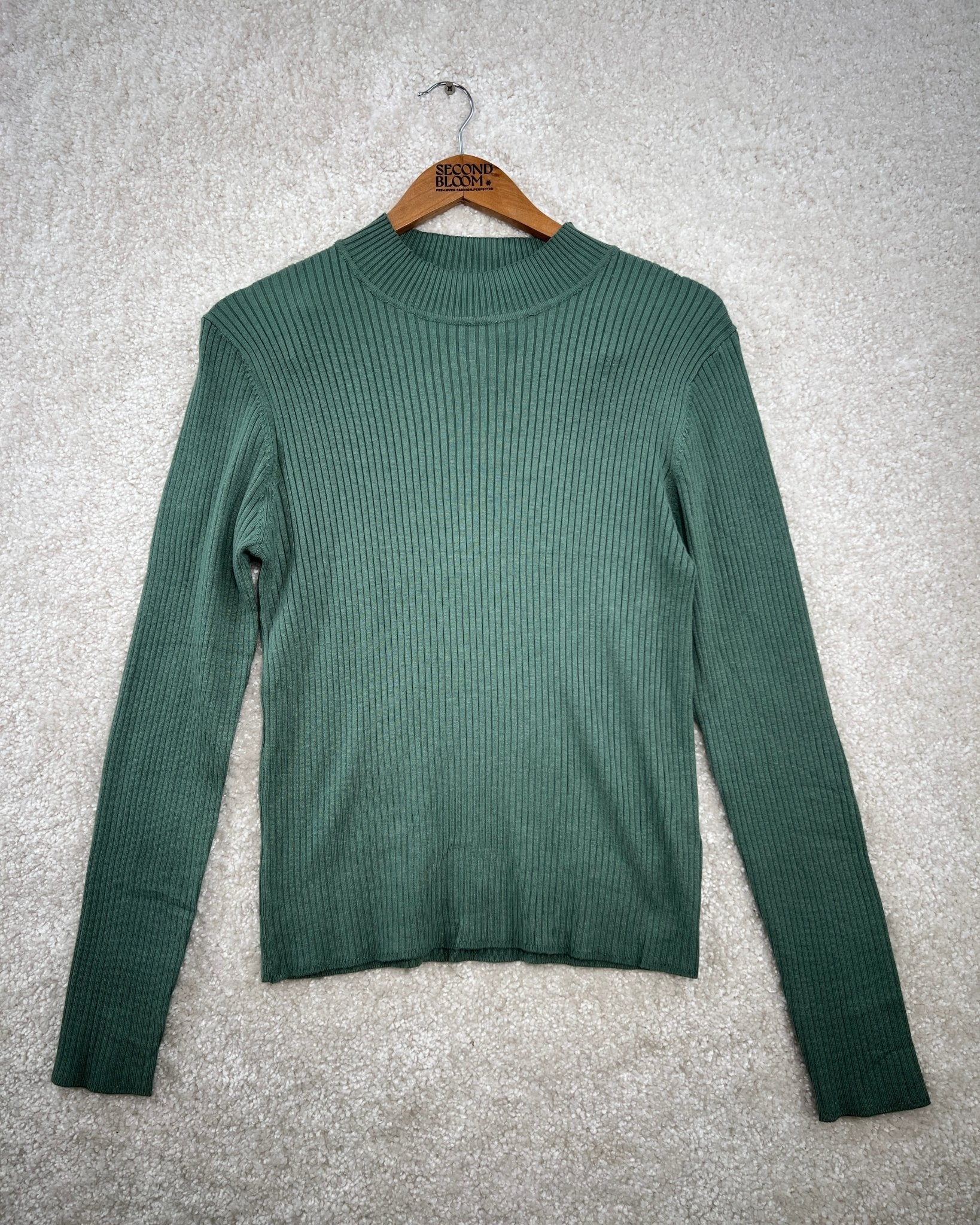 Ribbed Turtleneck Sweater in Deep Forest Green- Size: L