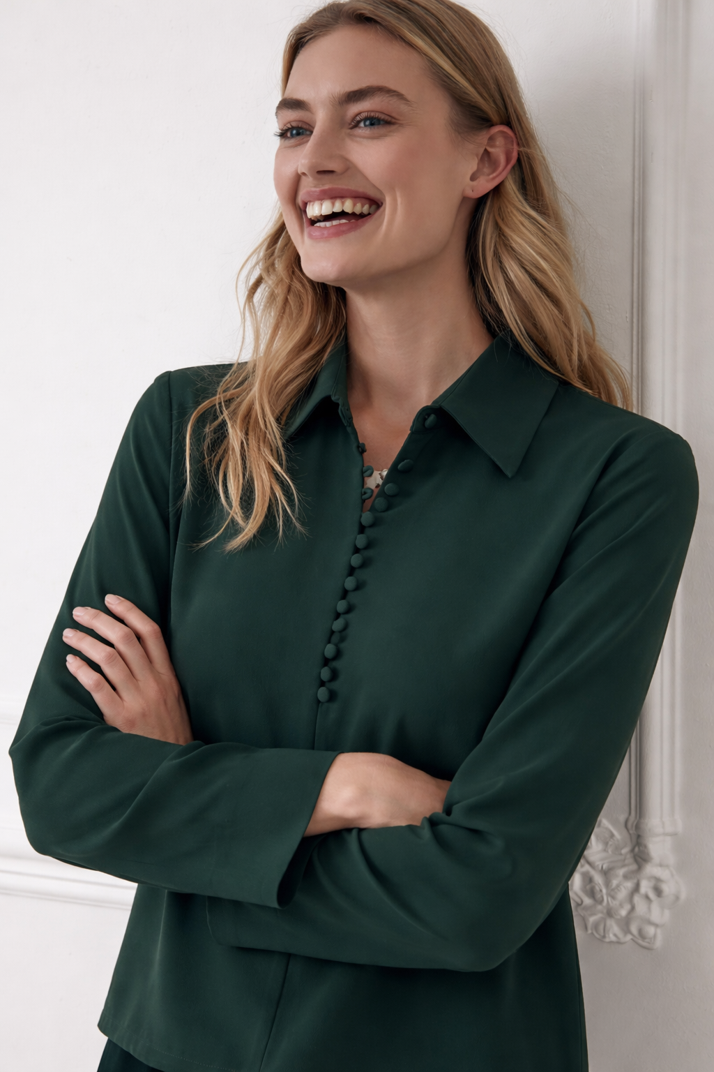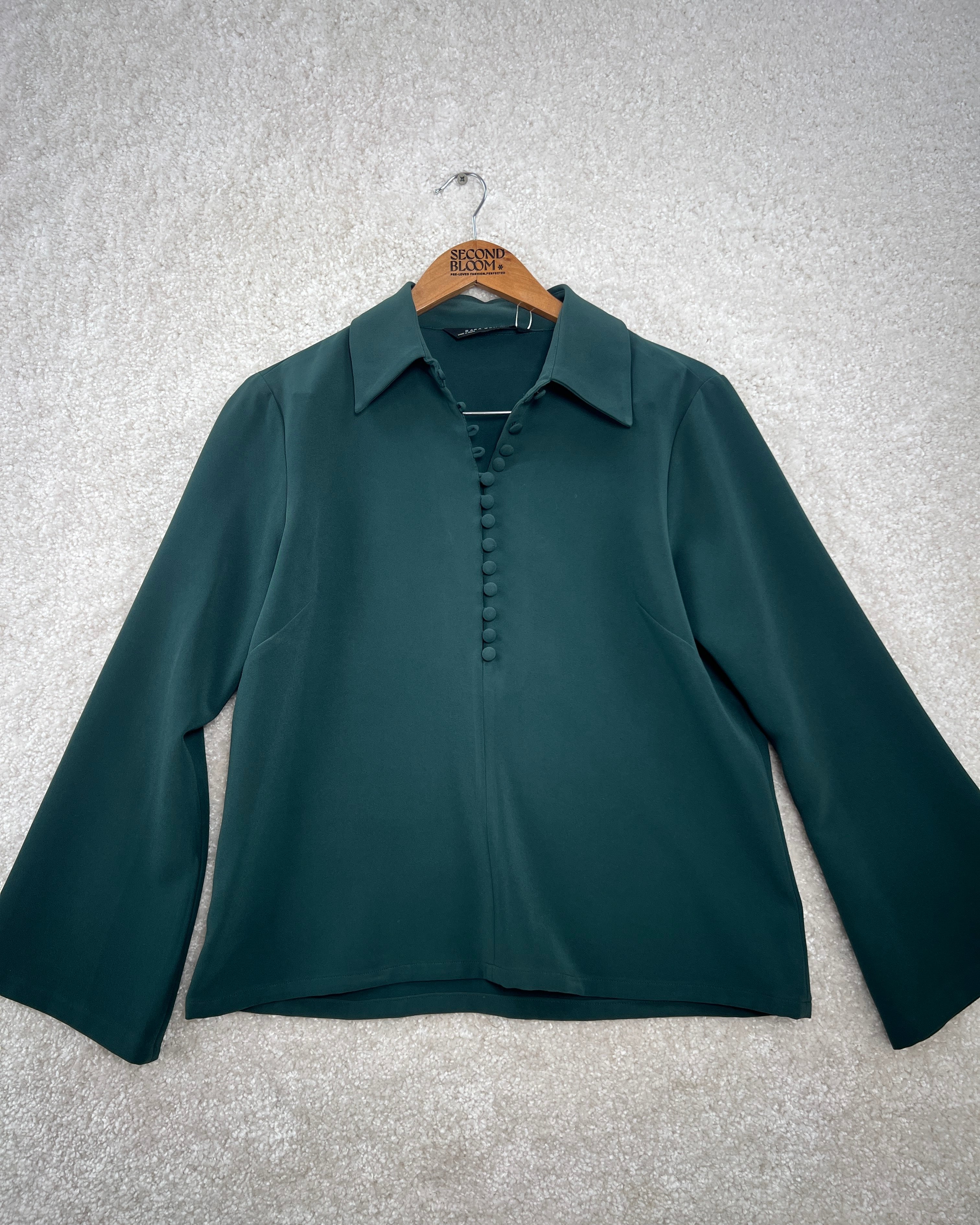 Classic Teal Green Blouse with Bell Sleeves- Size: L