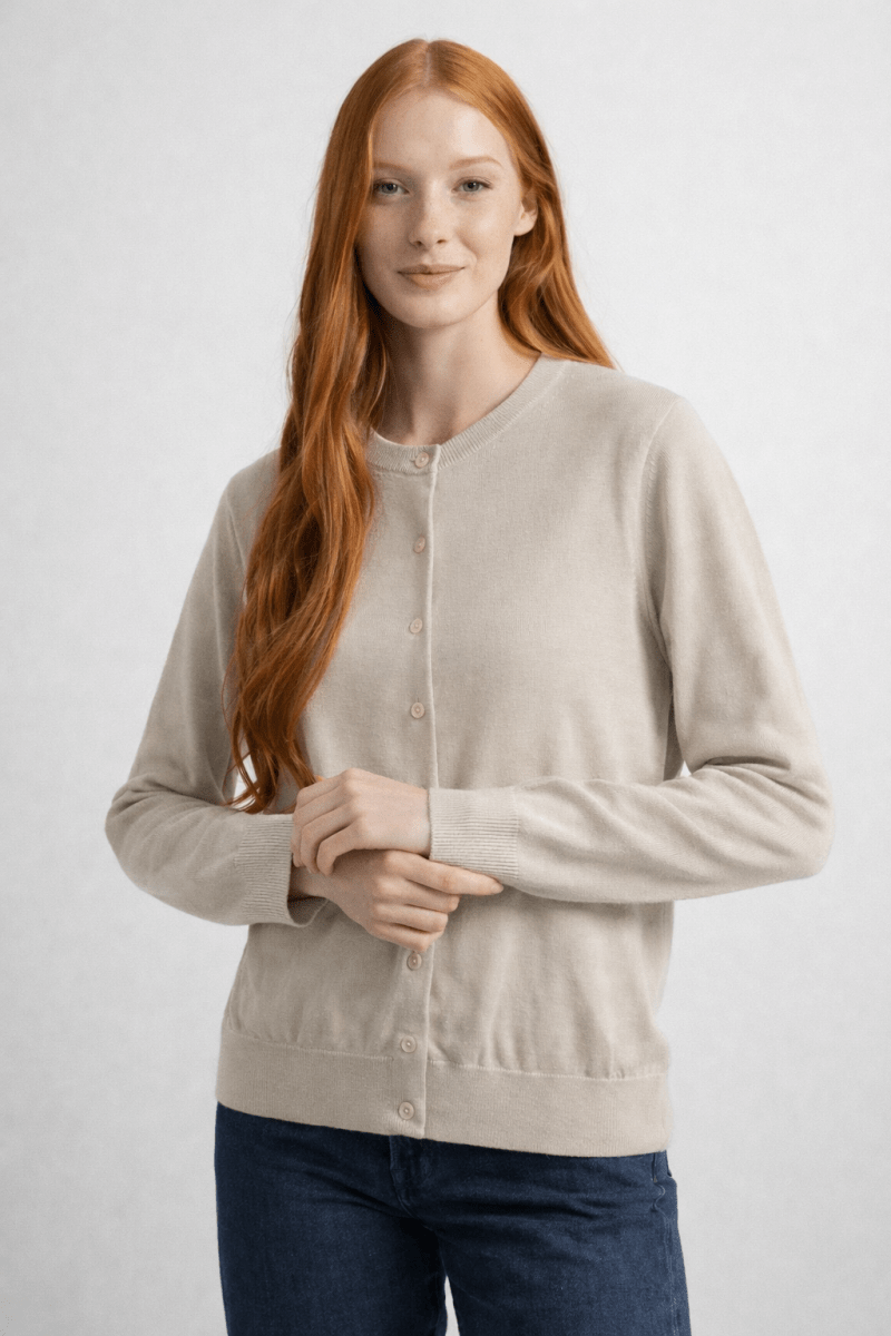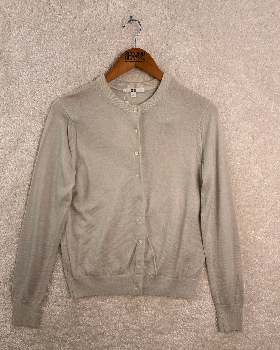 100% Wool Classic Cardigan n Neutral Beige Size: S