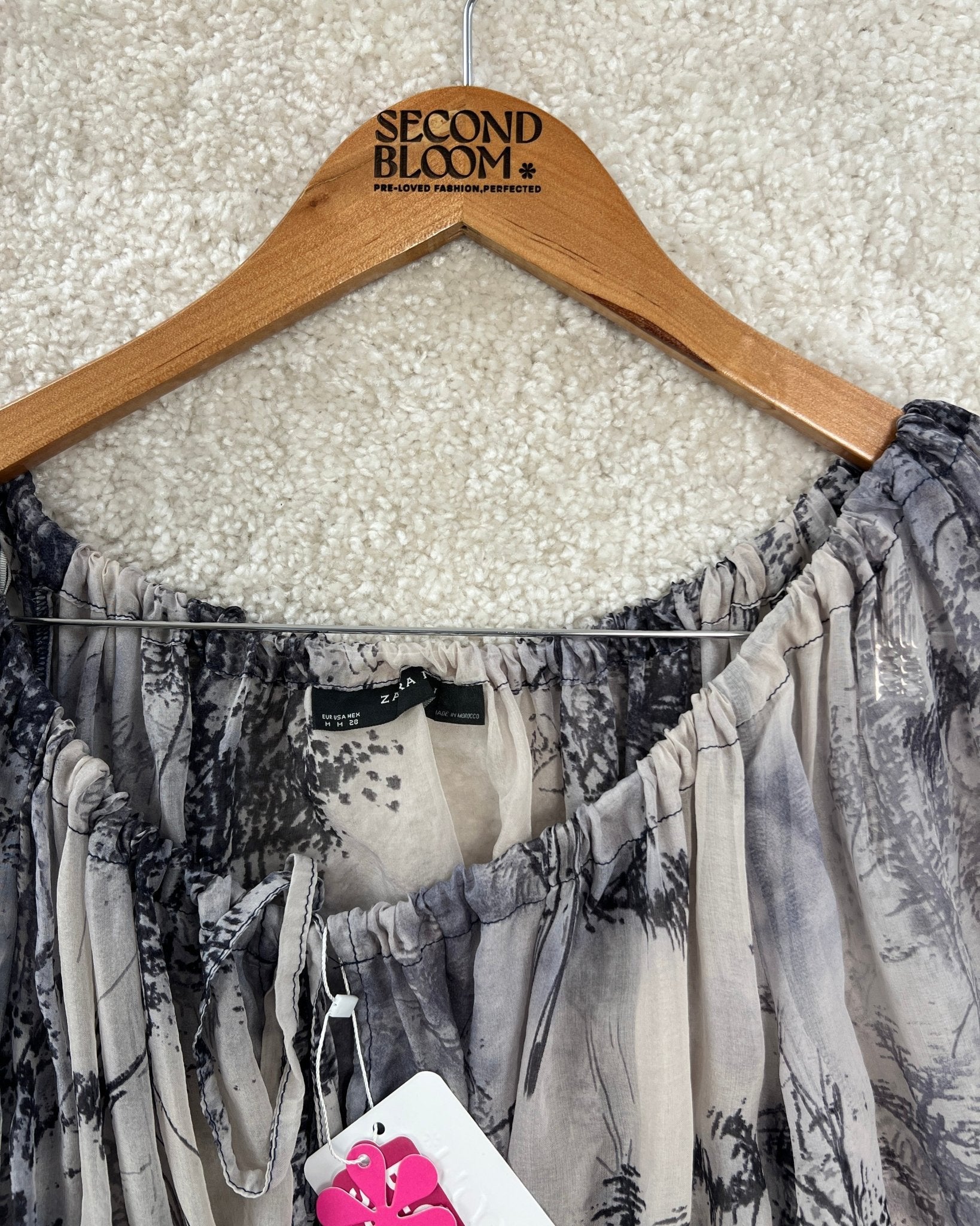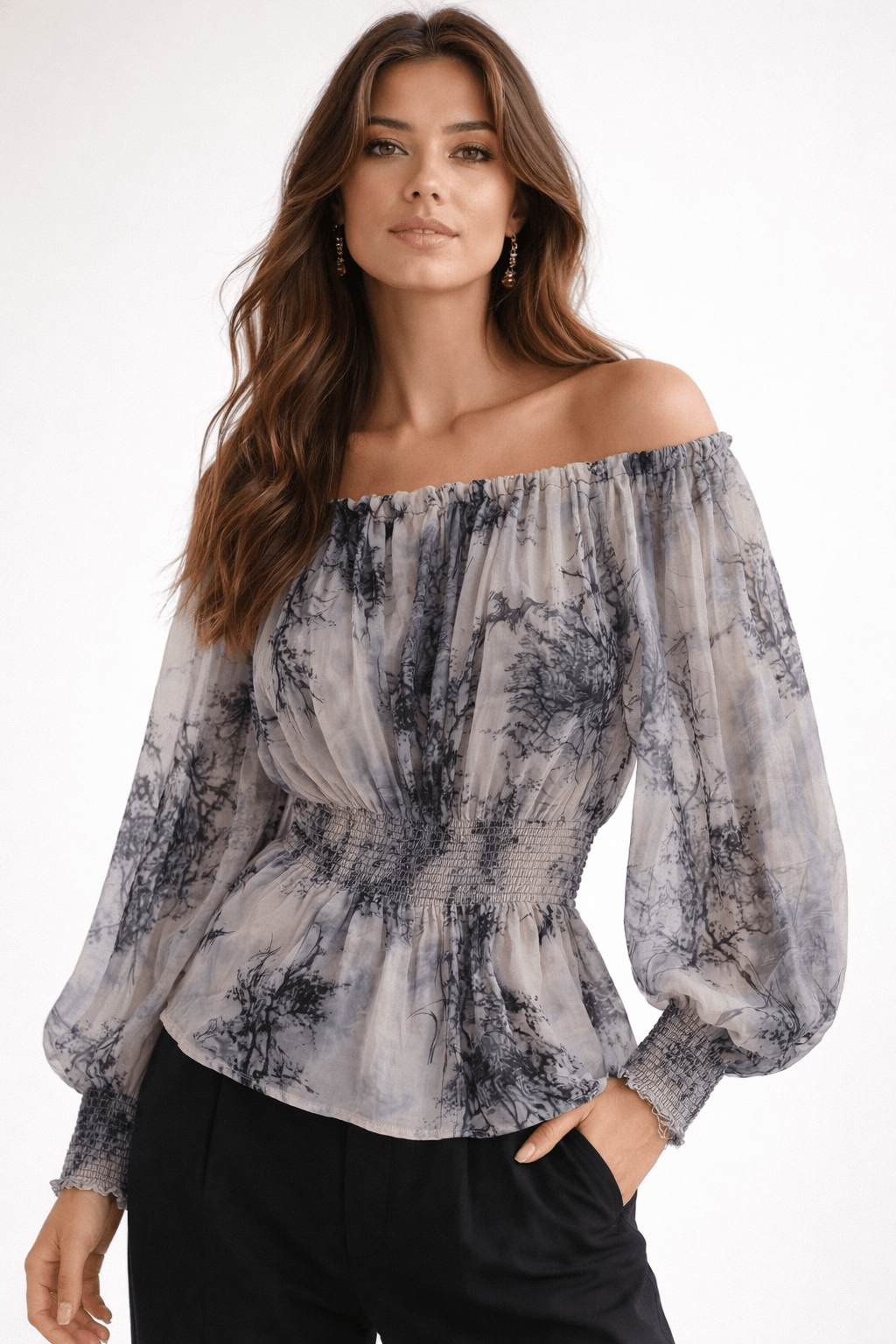 Off-shoulder Blouse with Smocked Waist- Size: M