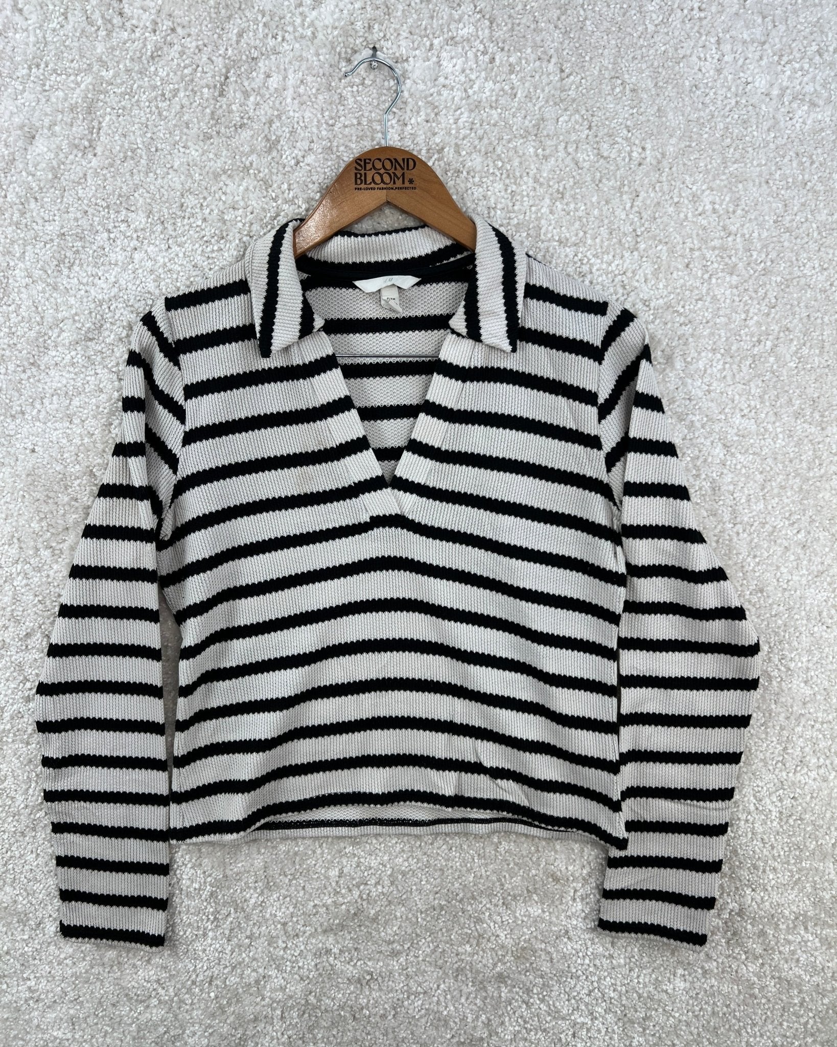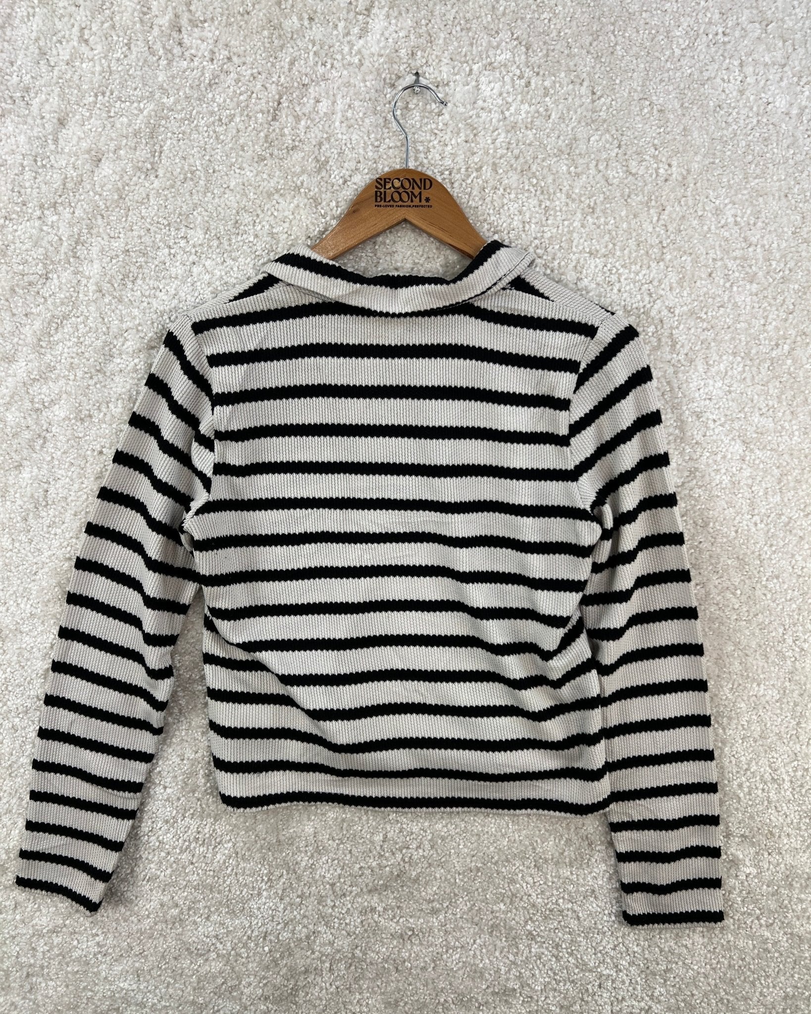 Black and White Horizontal Stripes Sweater - Size: M