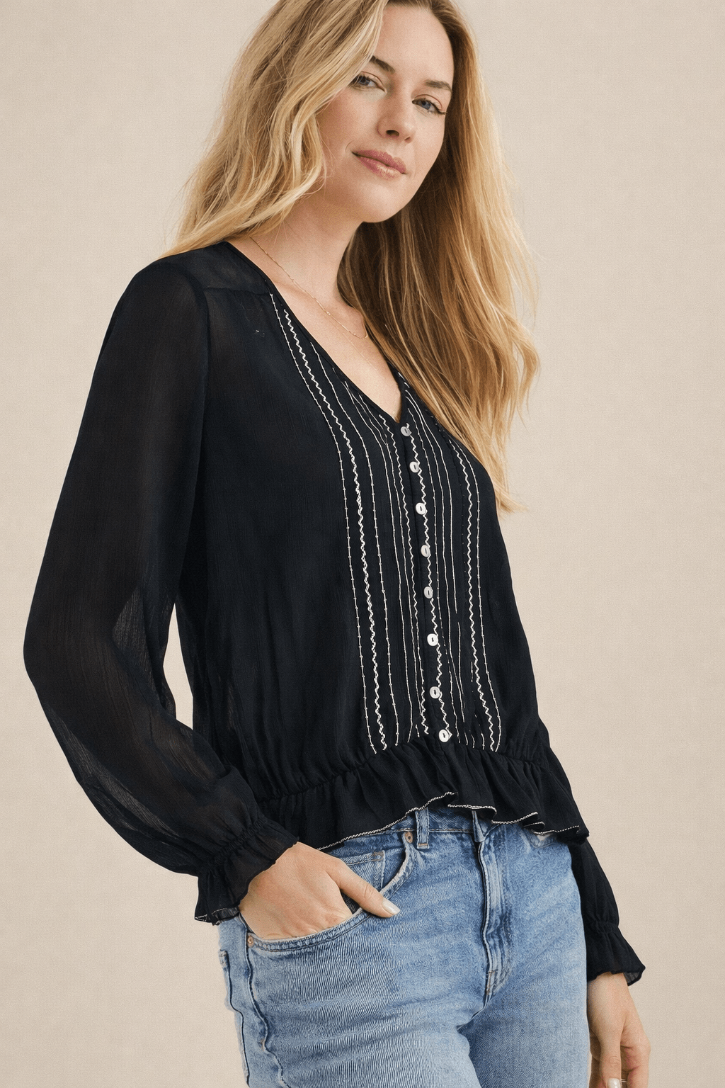 Semi-Sheer Blouse with Vertical Stitching - Size: L