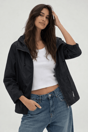 Waterproof Jacket in Boxy Cut with 3/4 Sleeves- Size: S