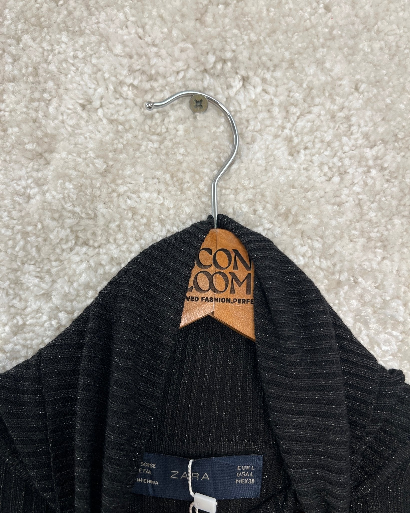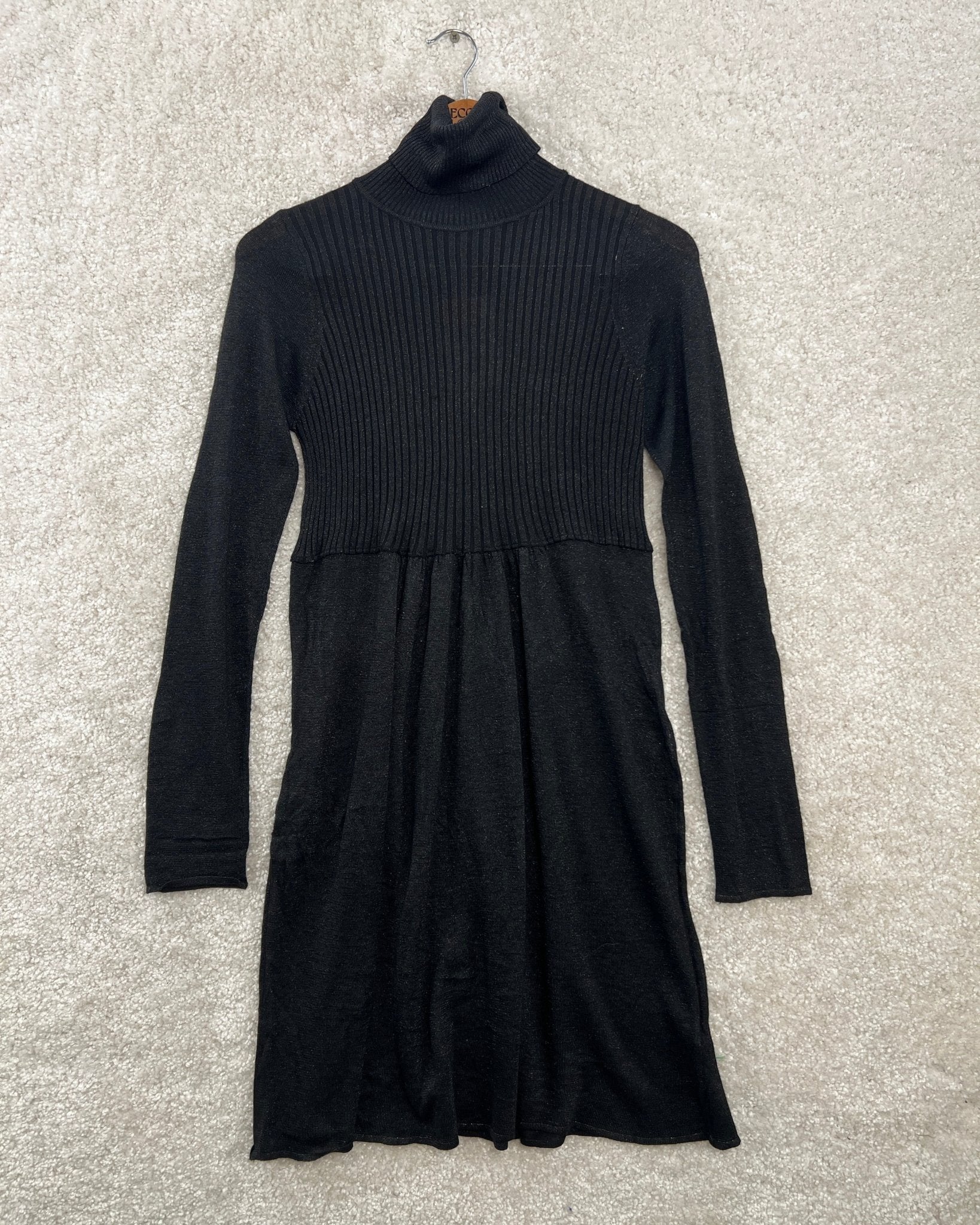 Rib Knit Turtleneck Dress with Shimmer Effect- Size: L