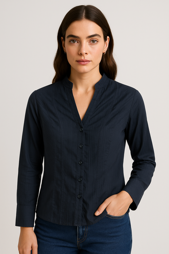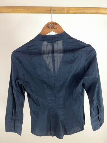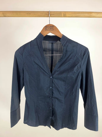 Basic Black Shirt with Mandarin Collar- Size: XS