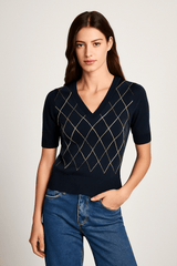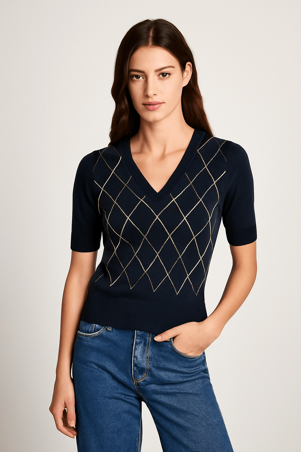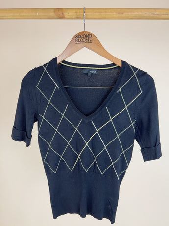 Cropped Sweater with Diamond Pattern- Size: S/M
