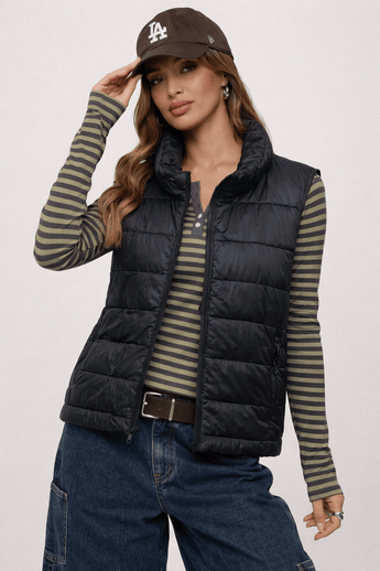 Quilted Lightweight Vest in Classic Black - Size: L