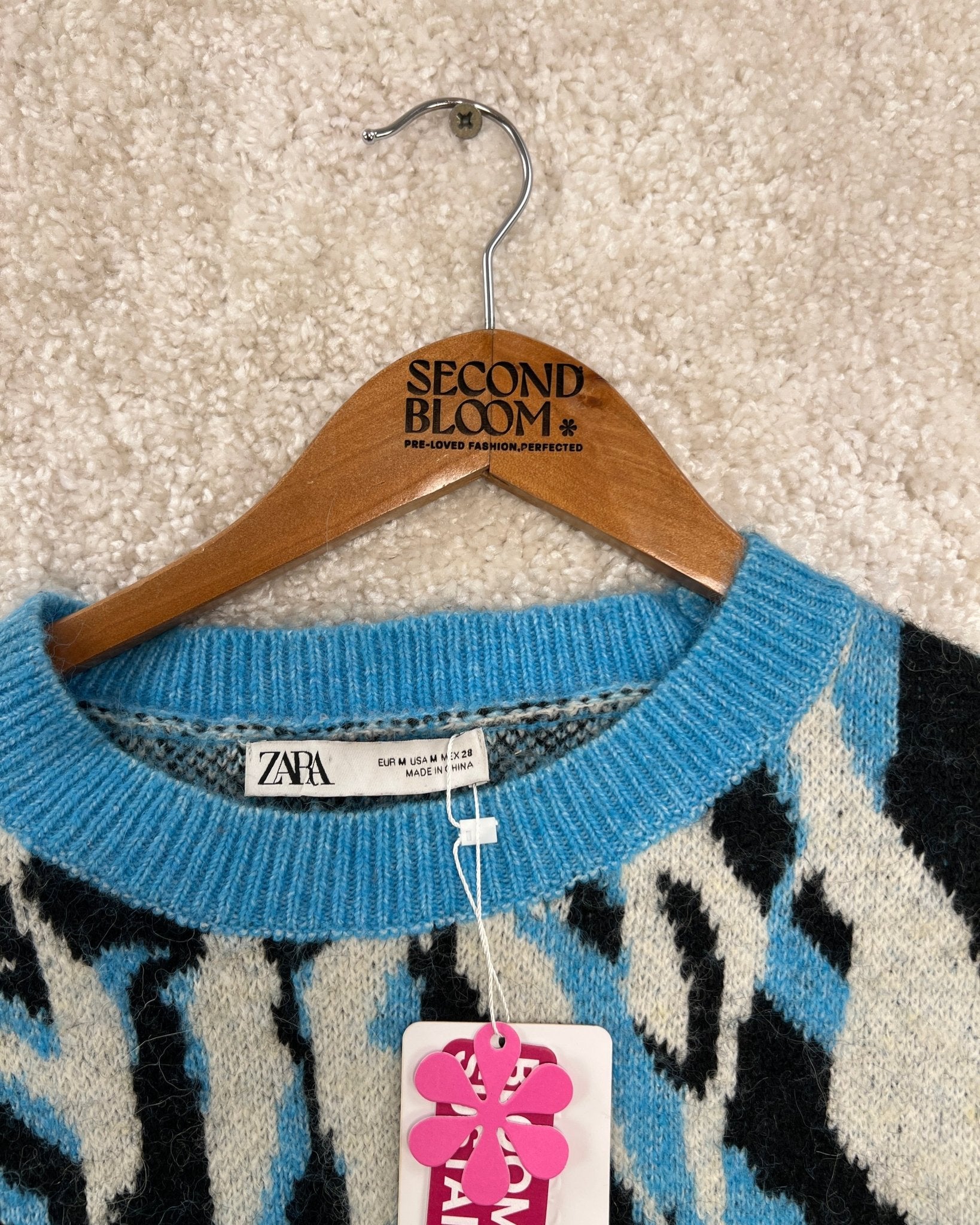 Cropped Animal Print Knit Sweater from Zara- Size: M