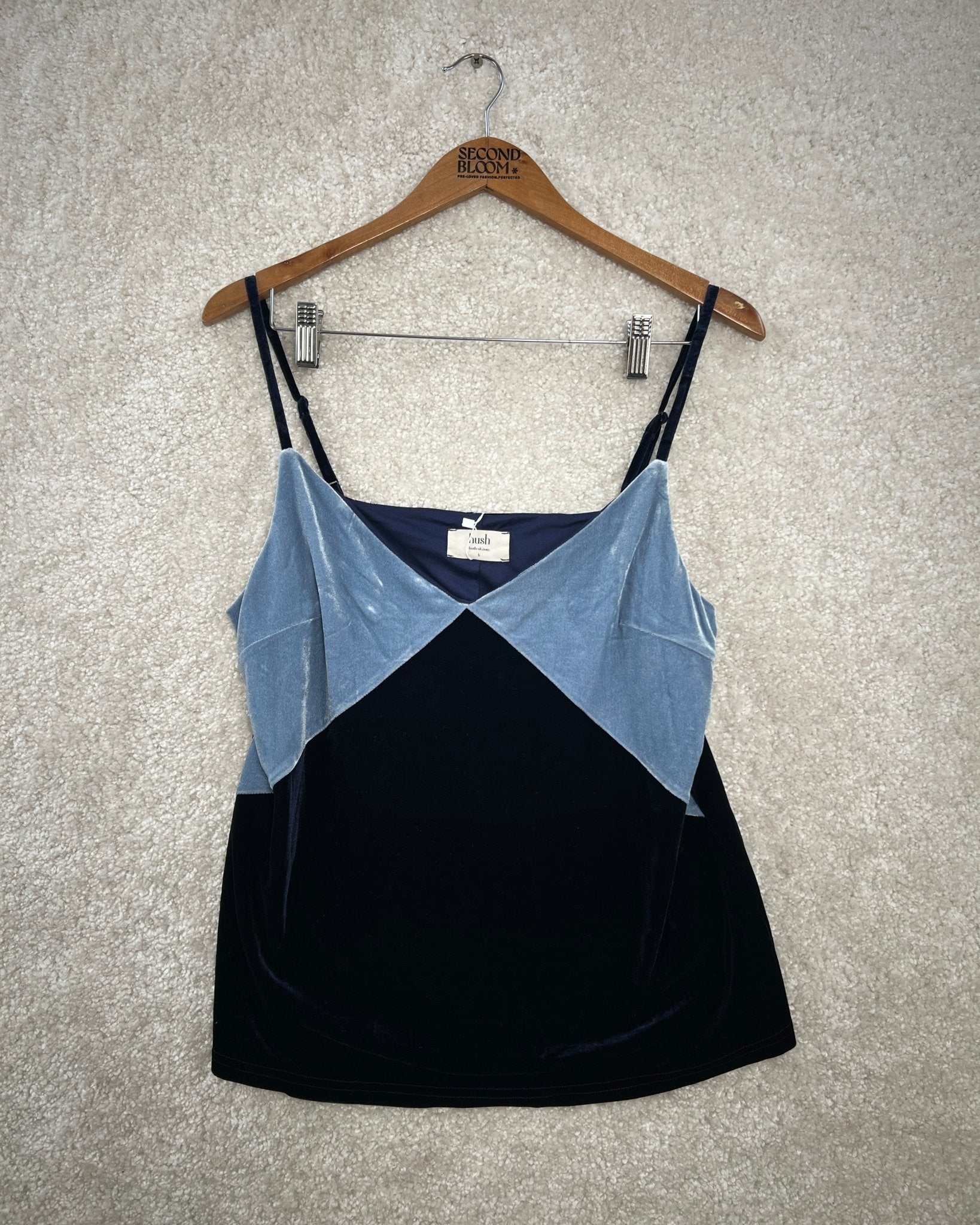 Velour color block Cami Top in Steel Blue- Size: L