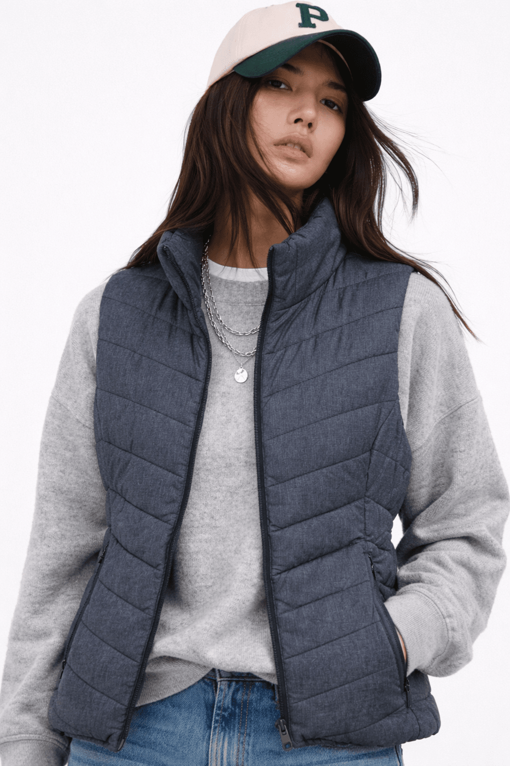 Quilted Vest in Heathered Blue-Grey - Size: L