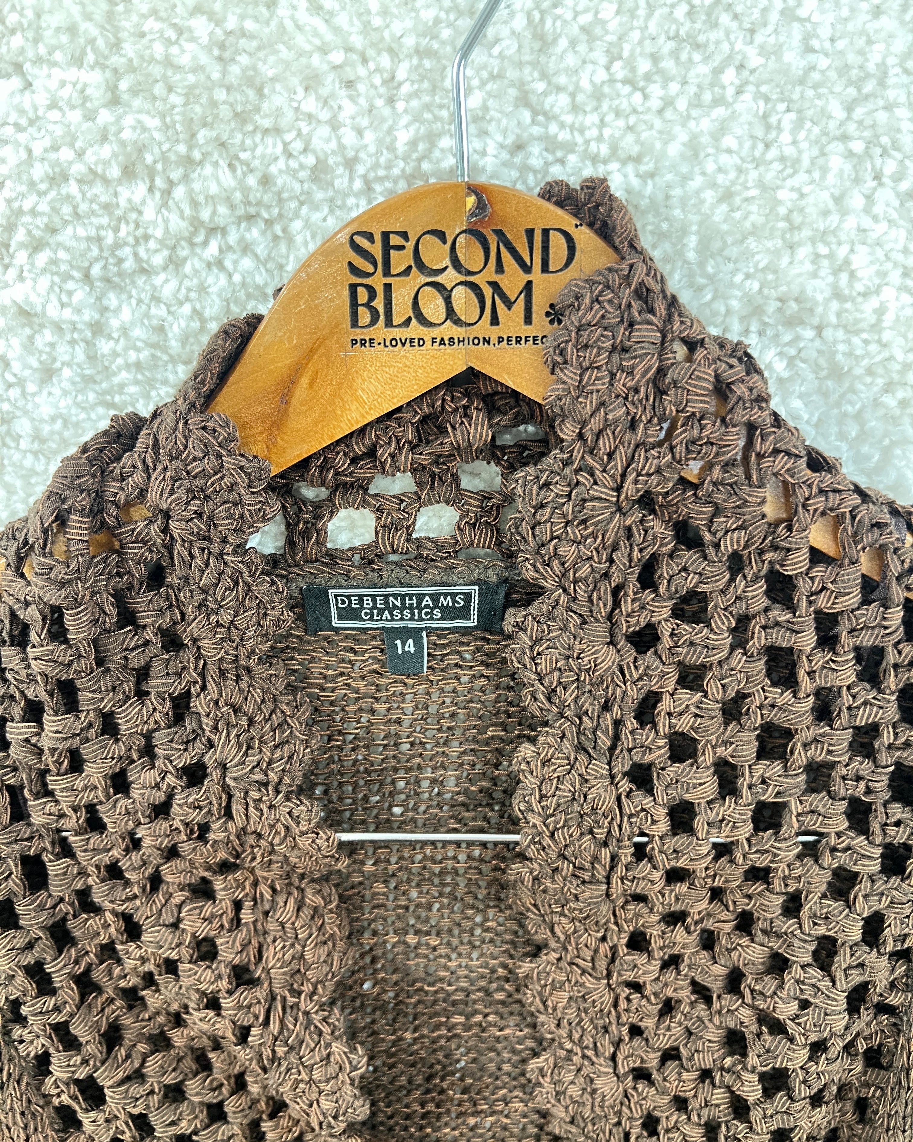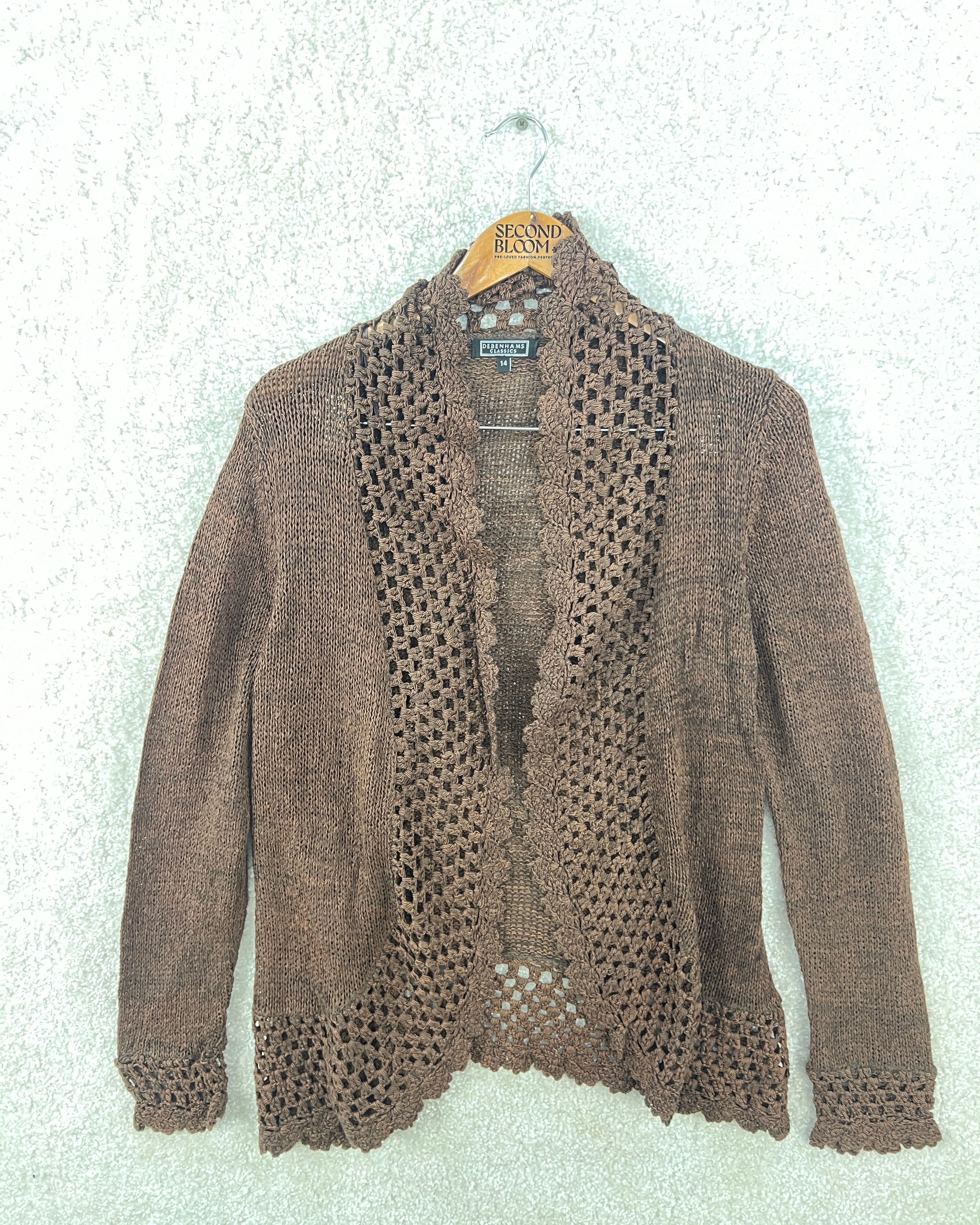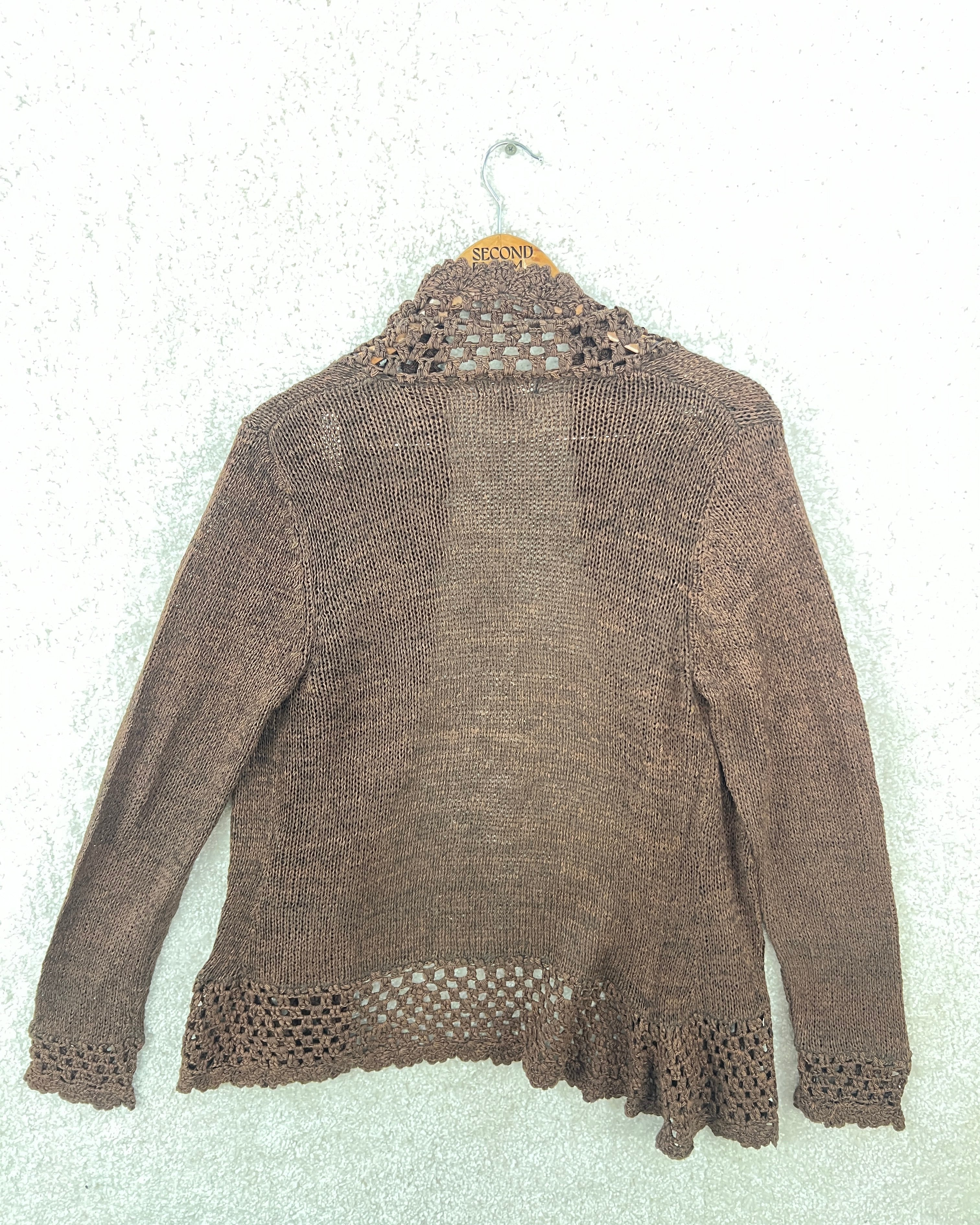 Crochet Knit Cardigan in Warm Brown- Size: M/L