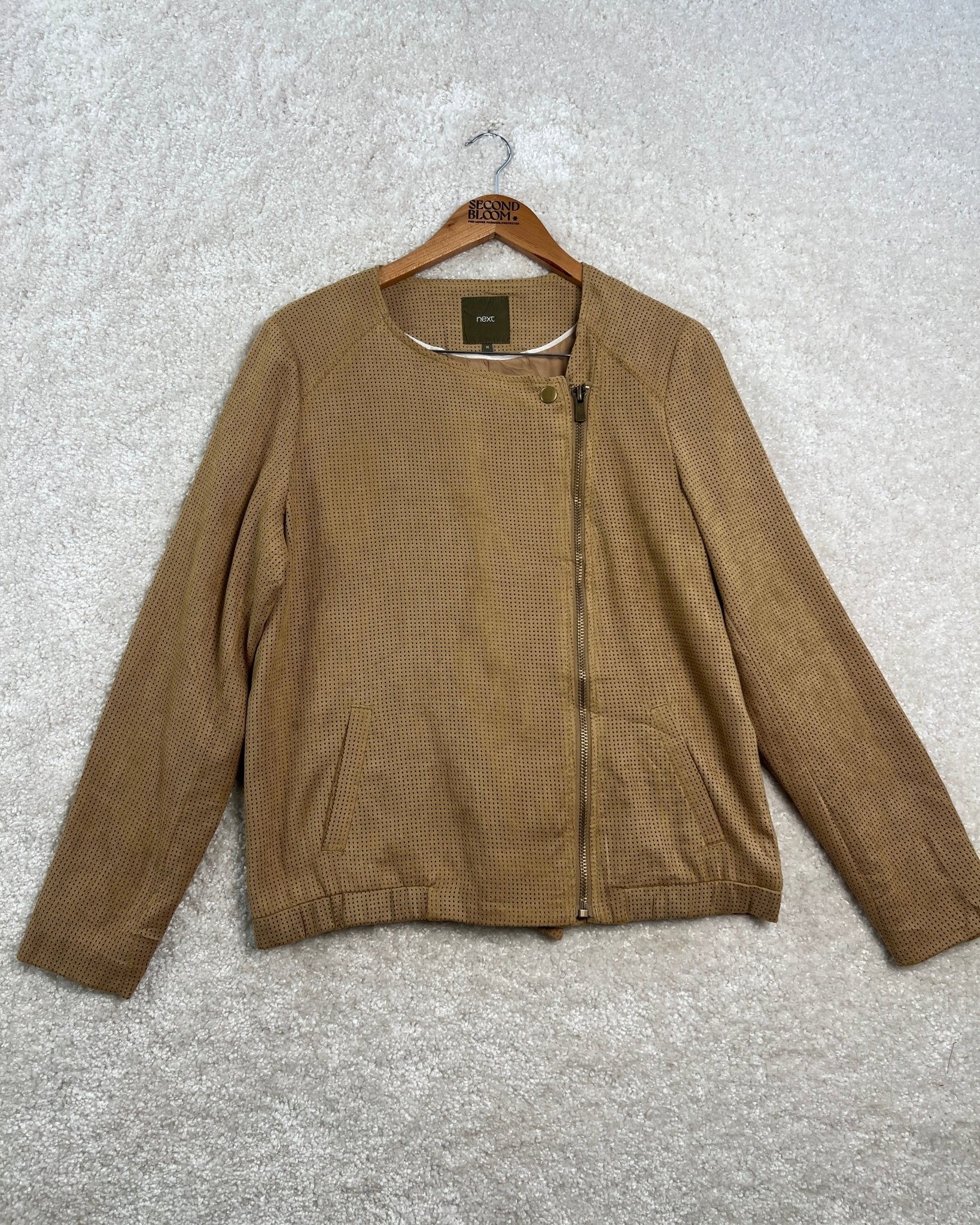 Tan Suede Bomber Jacket with an Asymmetrical Zip - Size: L