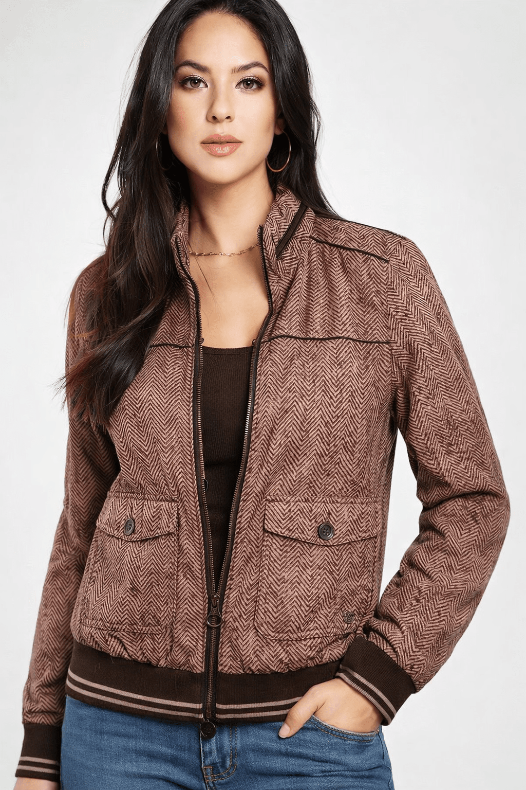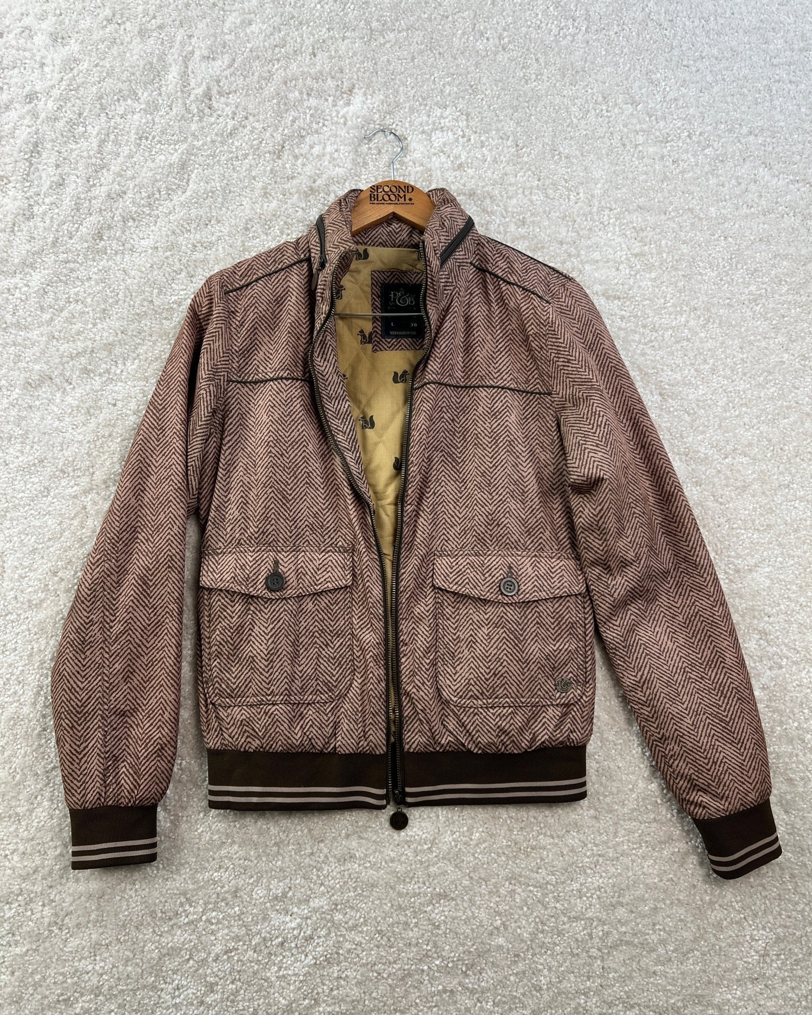 Waterproof Bomber Jacket with a Herringbone Pattern- Size: M/L