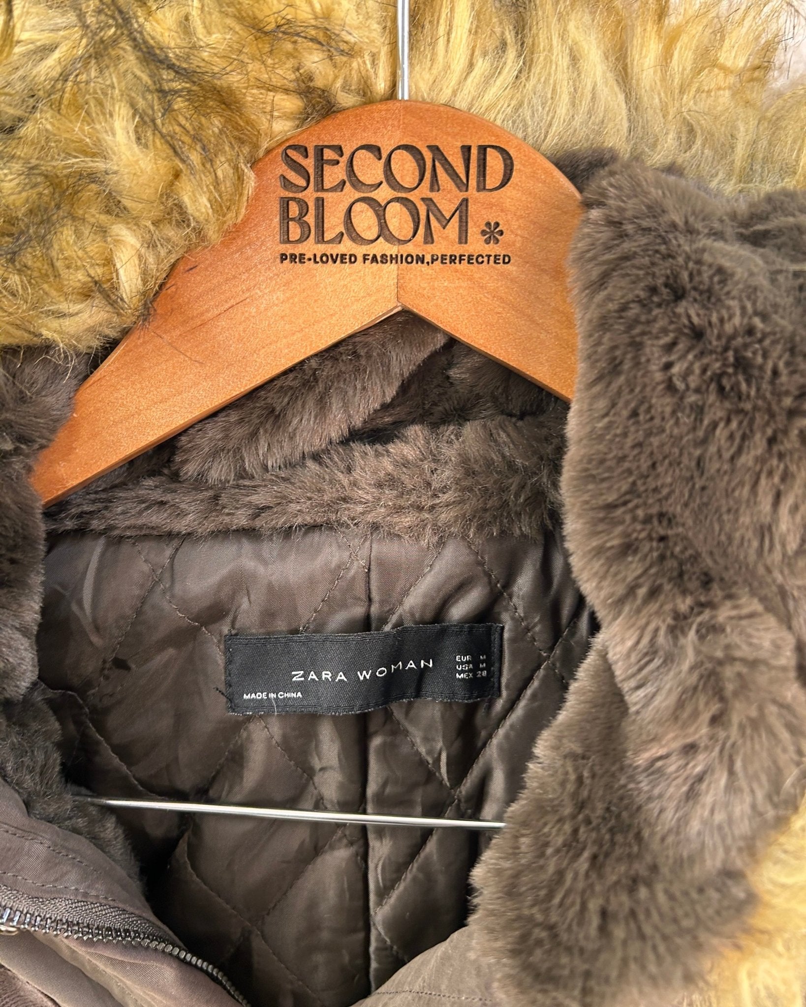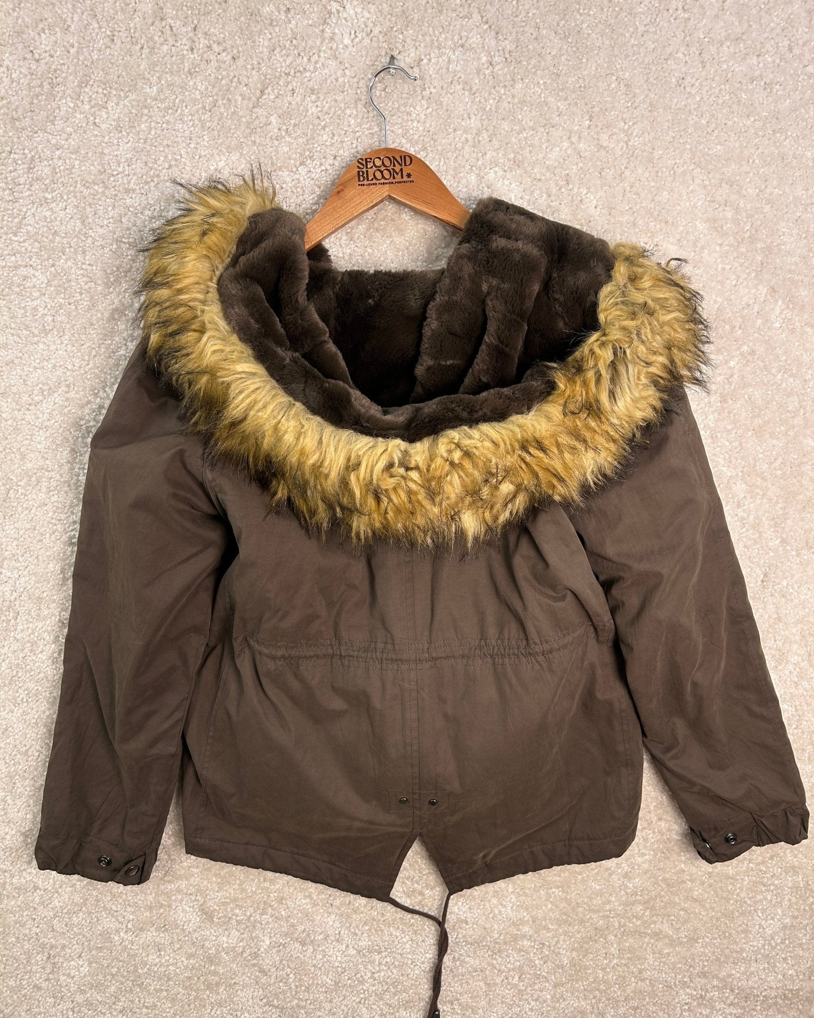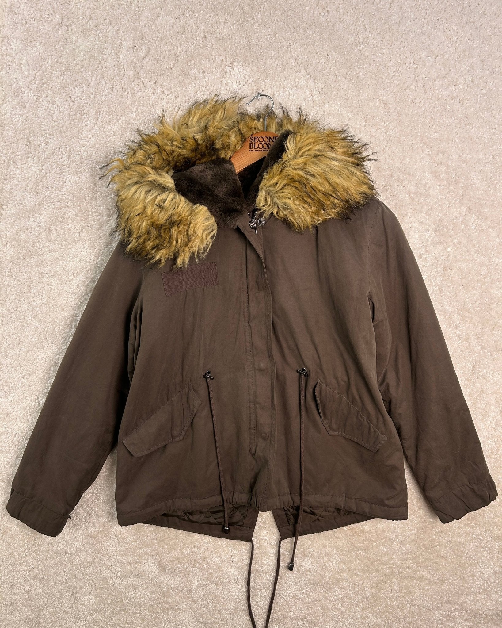 Zara Faux Fur Hooded Parka Jacket - Size: M
