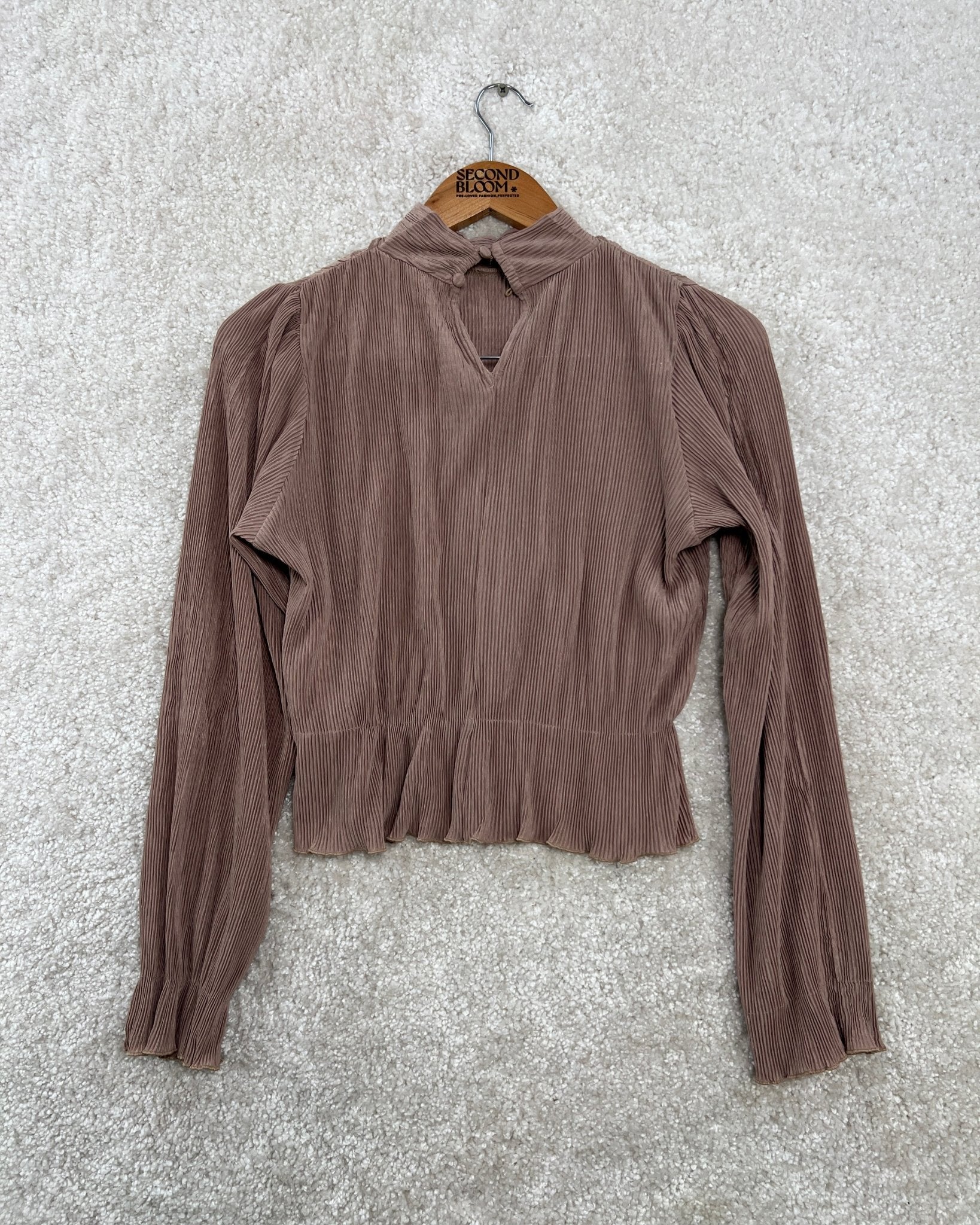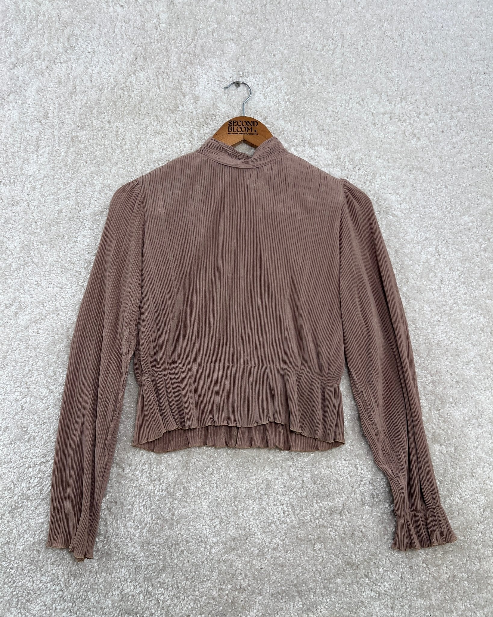 Pleated Cropped Blouse with Mock Neck - Size: S