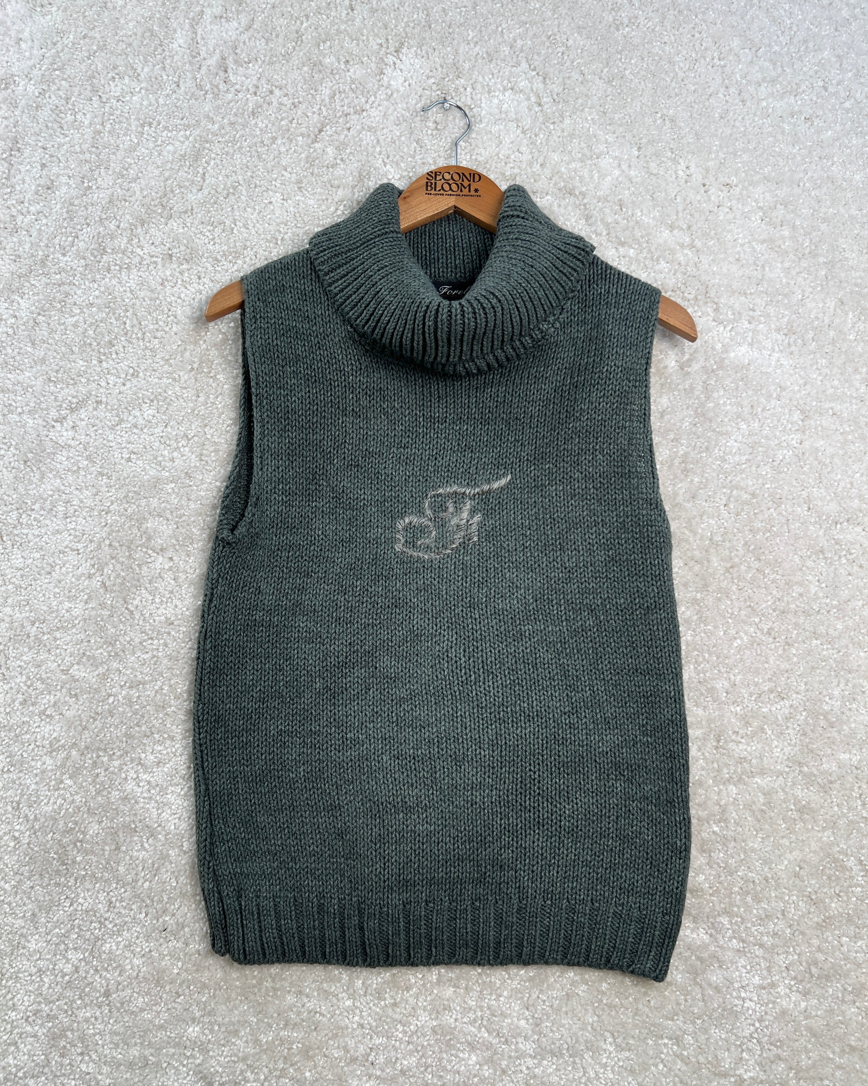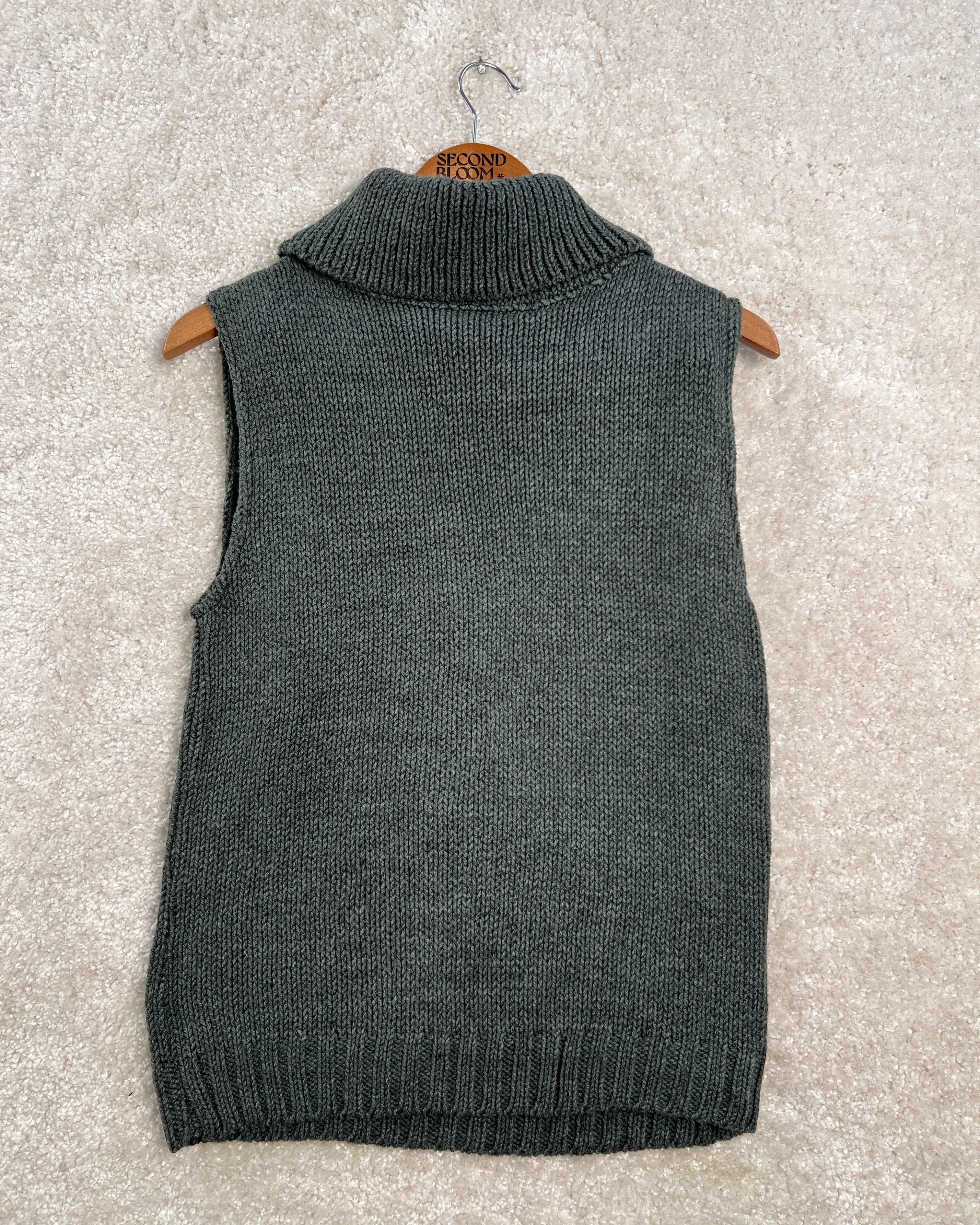 Sleeveless Turtleneck Sweater in Muted Teal- Size: L