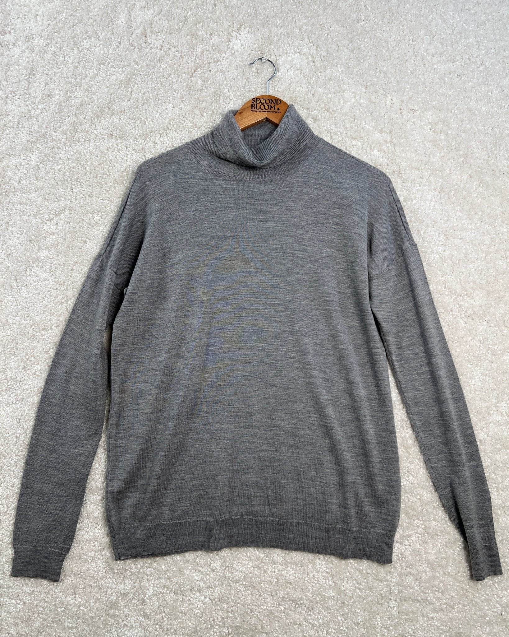 Grey Turtle-neck Sweater in 100% Wool - Size: L